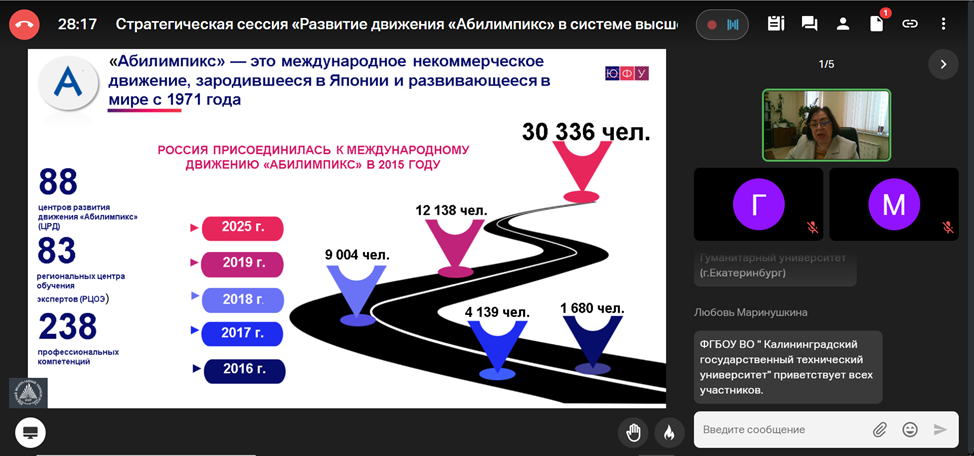 Круглый стол «Современные стратегии профессиональной подготовки инвалидов и лиц с ограниченными возможностями здоровья: десятилетний опыт регионального чемпионата «Абилимпикс» собрал 16 очных участников. Было зафиксировано 17 точек подключения.