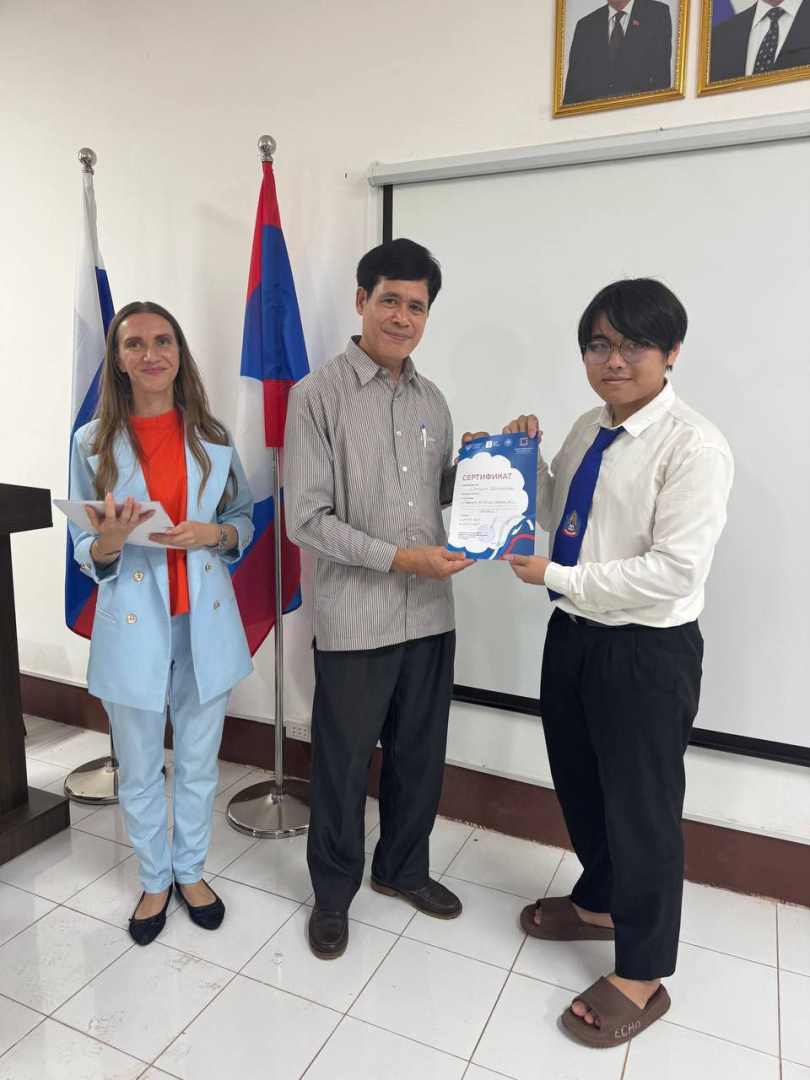 Вручение сертификатов об окончании курсов по русскому языку состоялось в центре открытого образования на русском языке и обучения русскому языку в Национальном университете Лаоса. Слушатели курсов сказали много добрых слов и пожеланий преподавателям института русского языка как иностранного РГПУ им. А. И. Герцена Марине Олейник и Юлии Карпеченковой, которые на протяжении семи недель погружали их в прекрасный мир русского языка и русской культуры.