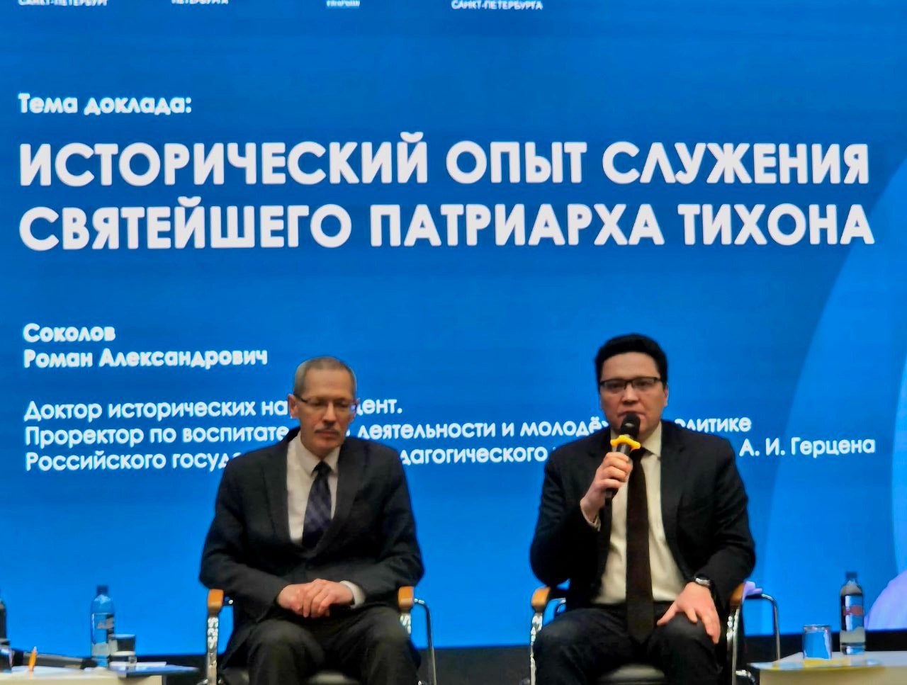 Герценовский университет на конференции представил проректор по воспитательной деятельности и молодежной политике Роман Александрович Соколов, выступивший с докладом «Исторический опыт служения Святейшего Патриарха Тихона». В своём выступлении Роман Александрович подчеркнул, что личность Патриарха Тихона имеет исключительное значение для отечественной истории. Его служение выпало на сложнейший период революционных потрясений, и даже сам факт восстановления патриаршества, произошедший в этот драматический момент, уже делает фигуру святителя знаковой. Доклад коснулся также параллелей с современностью, в том числе в контексте церковной ситуации на Украине, подчеркнув, что история, как и сто лет назад, требует от общества зрелости и стойкости.