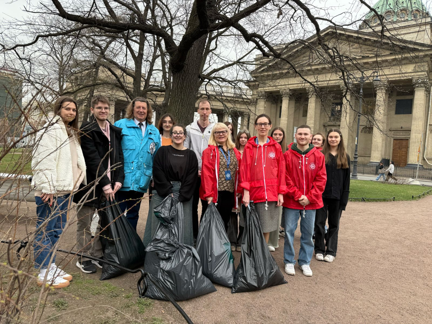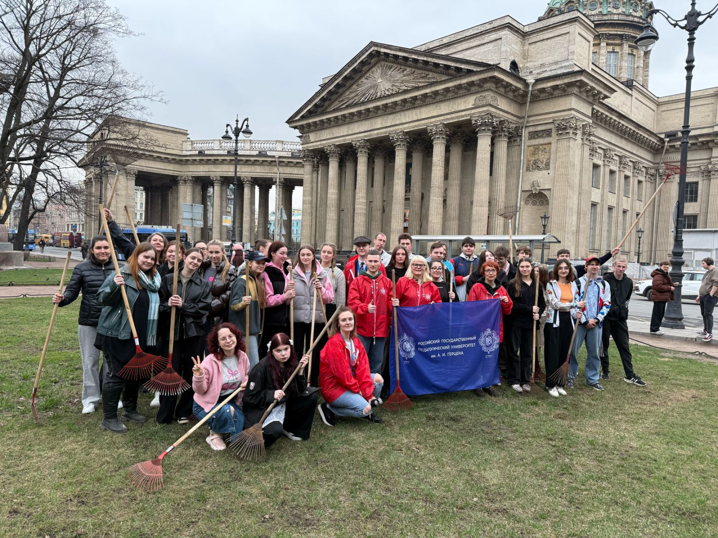 Студенты из студенческого объединения «Герценовский Игровой клуб» и Штаба студенческих отрядов вместе с преподавателями и сотрудниками университета убрали территорию от бытового мусора, опавшей листвы и сухой травы, а также привели в порядок цветники и клумбы.