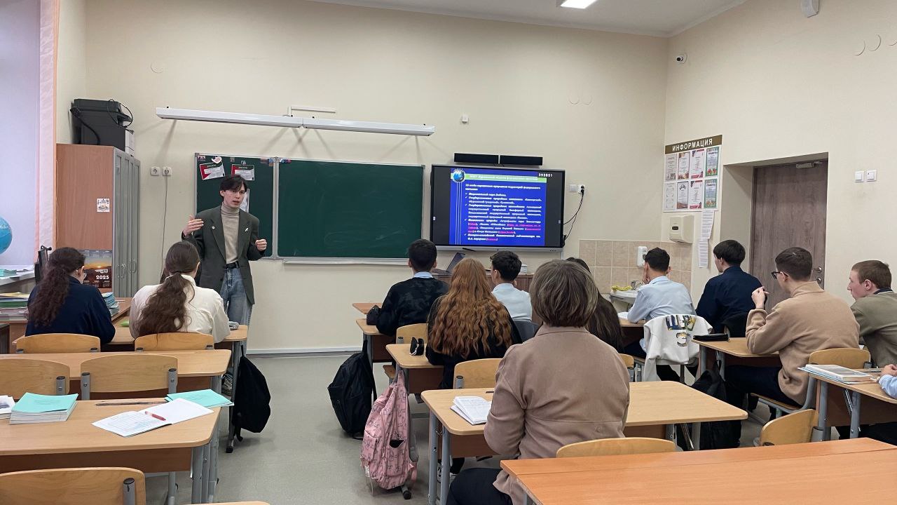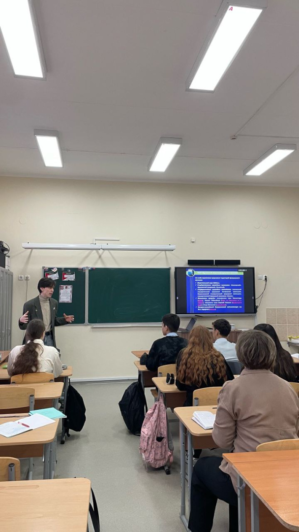 Студент 3 курса факультета географии Дамир Мухаметзьянов провел лекцию по презентации «География природного и культурного наследия Арктики: Мурманская область» для учеников 9-го класса школы № 20 Ижевска.