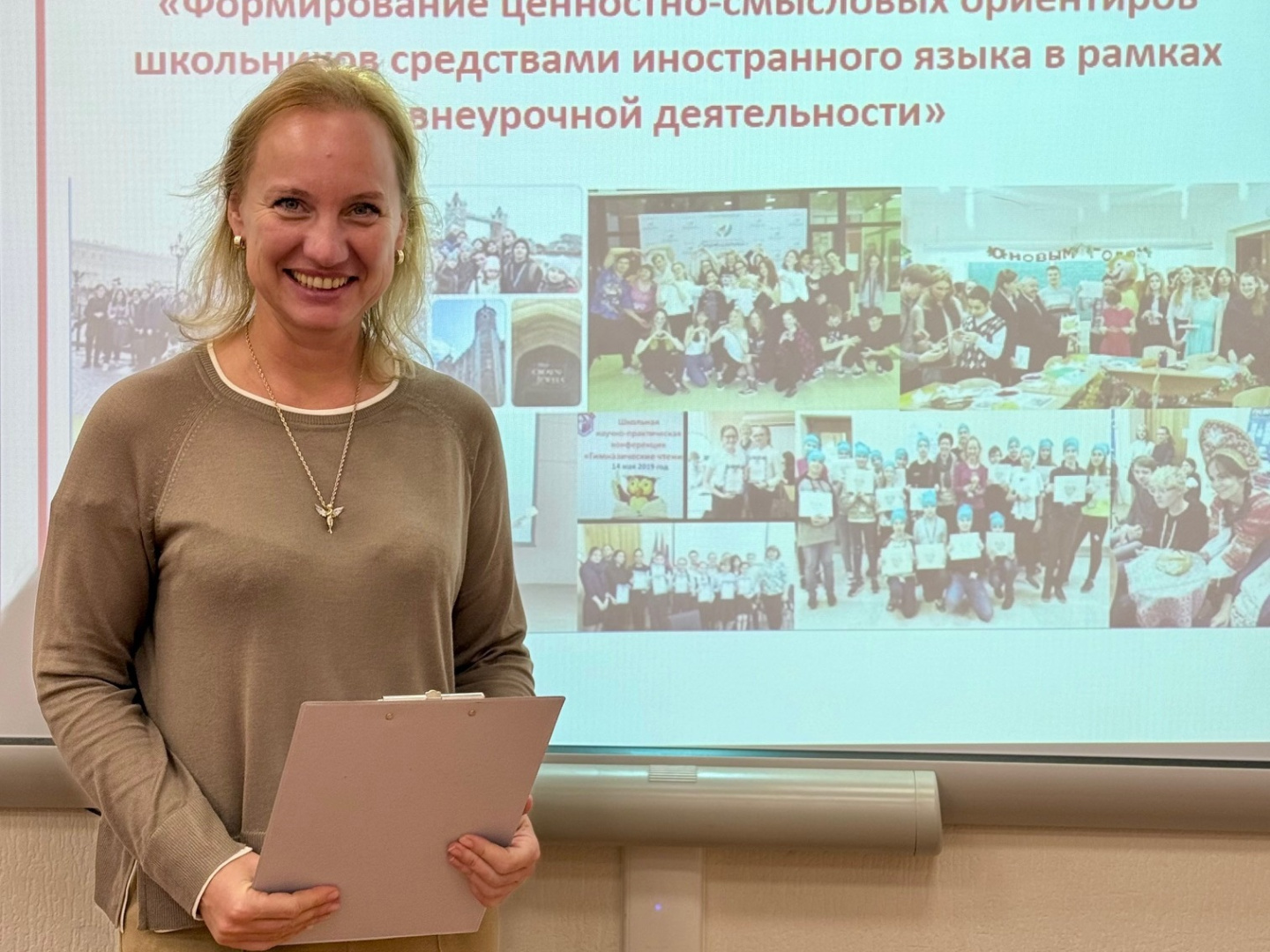 Участники представили к обсуждению четыре доклада, которые задали вектор для профессионального диалога. Заместитель директора по учебно-воспитательной работе ГБОУ гимназия № 11 С. И. Константинова сделала акцент на формировании ценностно-смысловых ориентиров школьников средствами иностранного языка в рамках внеурочной деятельности, отметив, что особенности, присущие внеурочной деятельности, а также рациональное сочетание направлений, форм и методов внеурочной деятельности обладают эффективным воздействием на ценностно-ориентировочную сферу школьника.