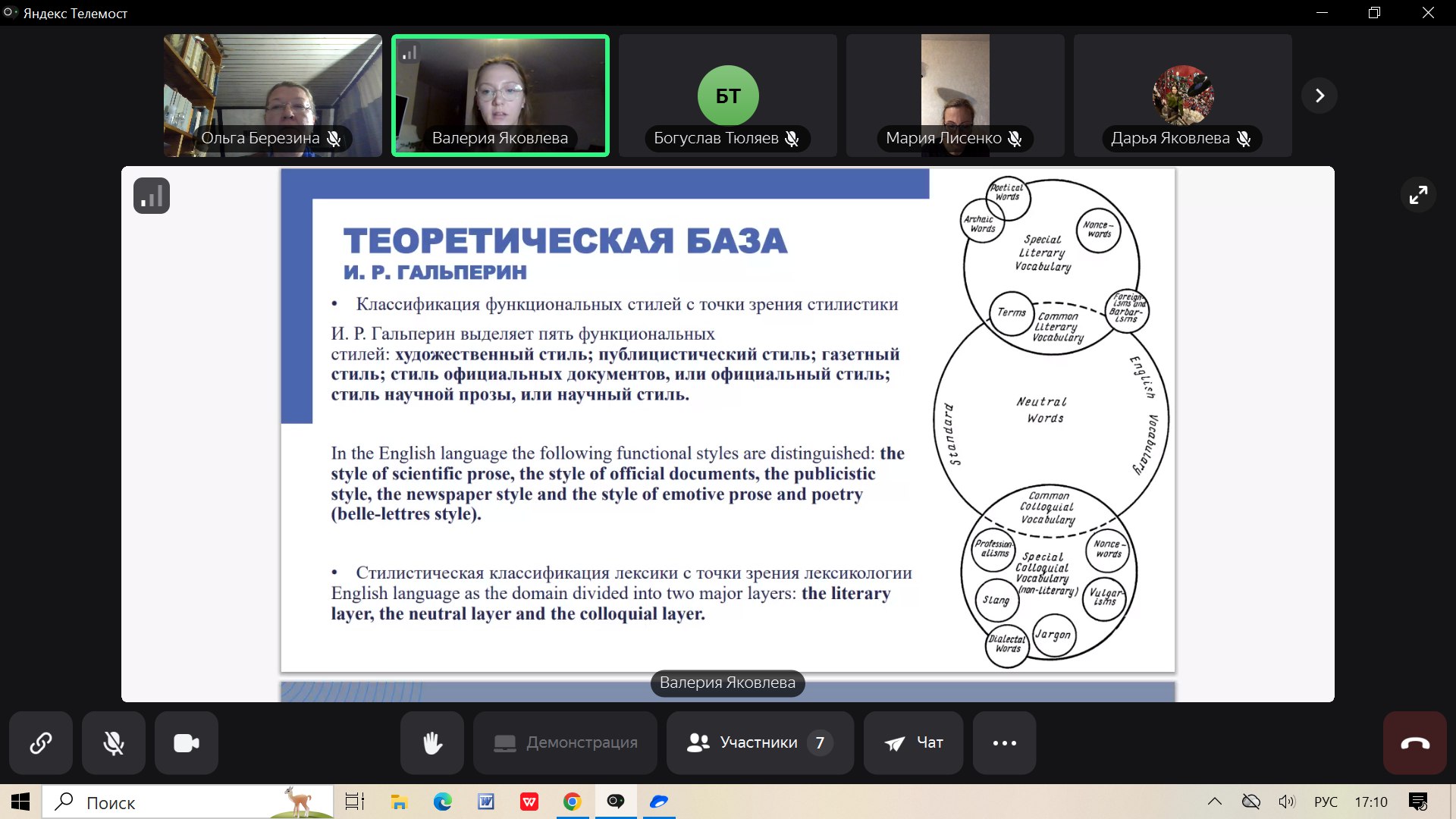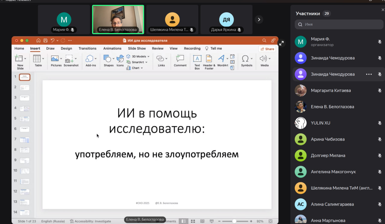 На секционных заседаниях были освещены актуальные вопросы лингвистики и стилистики текста, прагмалингвистики и лингвокультурологии. В пленарной части опытом в работе с инструментарием нейроассистетов поделилась доктор филологических наук, профессор Елена Белоглазова. Научный доклад доктора филологических наук, профессора, заведующей кафедры английского языка и лингвострановедения Зинаиды Чемодуровой был посвящен современным тенденциям в исследовании мультимодальности аудивизуальных и классических текстах.
