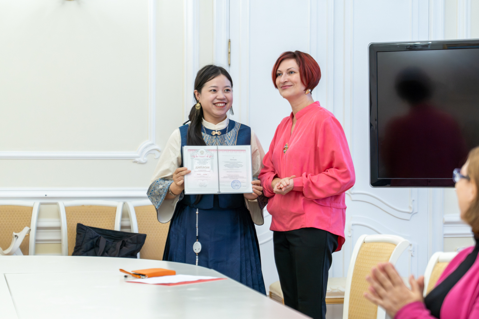 Дипломы вручала куратор выпускников — заместитель директора института музыки, театра и хореографии по научной работе, доцент кафедры музыкального воспитания и образования Анастасия Папенина.