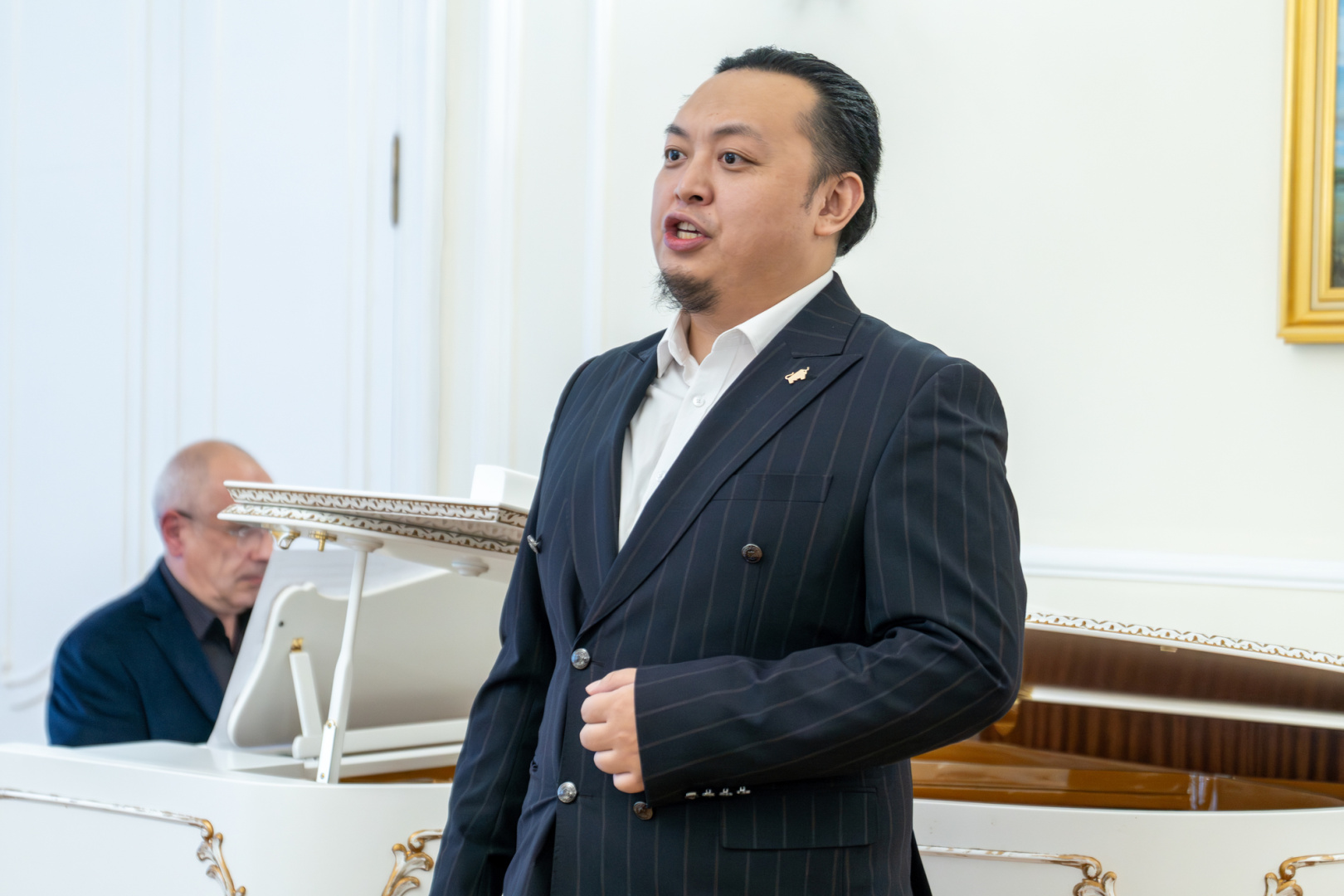 На церемонии выпускница Ольга Черкашина исполнила «Фантазию» си минор Александра Скрябина. Кроме того, прозвучал романс «Жди меня» из оперы «А зори здесь тихие» Кирилла Молчанова в интерпретации Ван Юе и куплеты «Если б милые девицы...» из оперы «Пиковая Дама» Петра Чайковского в исполнении Жэнь Яньмина. Партию фортепиано исполнил заслуженный артист Республики Северная Осетия ‒ Алания;Анатолий Кузнецов.