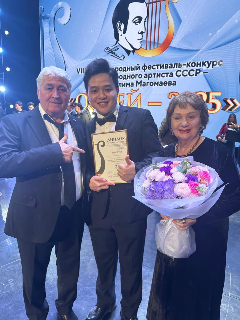 От всего сердца поздравляем нашего студента Чжан Хунго (класс заведующей кафедрой сольного пения института музыки, театра и хореографии, заслуженного работника культуры РФ, профессора, Почетного профессора РГПУ им. А. И. Герцена Татьяны Смелковой) с присуждением высокой награды ‒ премии I степени в номинации «Академический вокал».