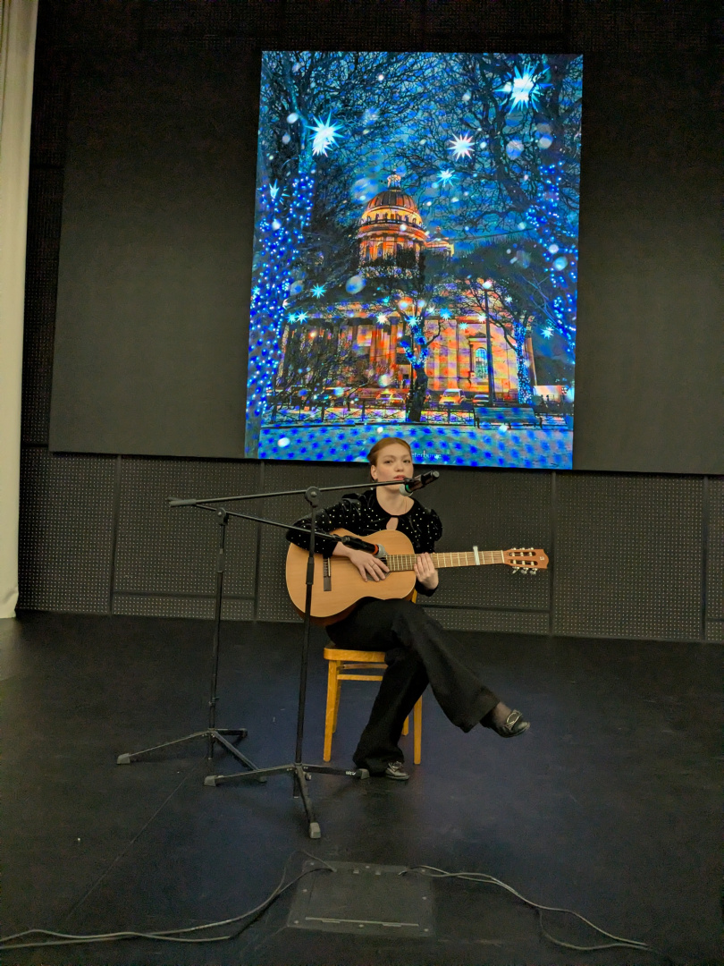 В честь Международного дня инвалидов в доме социального обслуживания «Серафимовский» в Красном селе состоялось мероприятие, организованное силами студентов института музыки, театра и хореографии. В программе концерта прозвучали яркие произведения для виолончели в исполнении Юлии Грозы и Валерия Кандакова, Елена Кириллова порадовала исполнением на флейте соло, наряду с авторским сочинением Софьи Ремифарской прозвучали известные песни «А снег идет», «Где-то на белом свете» (Дарья Иванова), «Этот город самый лучший» (Надежда Жданович).