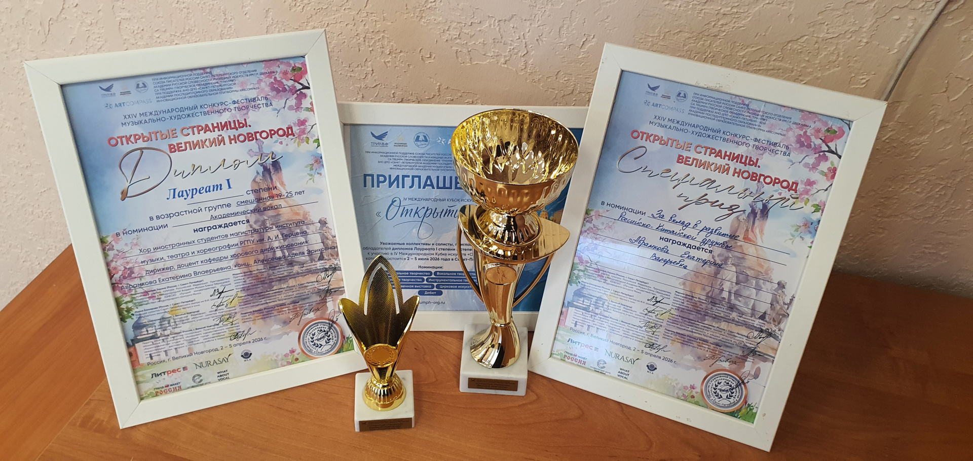 Хор иностранных студентов магистратуры института музыки, театра и хореографии РГПУ им. А. И. Герцена стал лауреатом I степени международного конкурса-фестиваля музыкально-художественного творчества «Открытые страницы. Великий Новгород». Руководитель коллектива, доцент кафедры хорового дирижирования Екатерина Аврамкова была удостоена специального приза «За вклад в развитие Российско-китайской дружбы», концертмейстер Аделя Алексеева получила звание «Лучший концертмейстер».