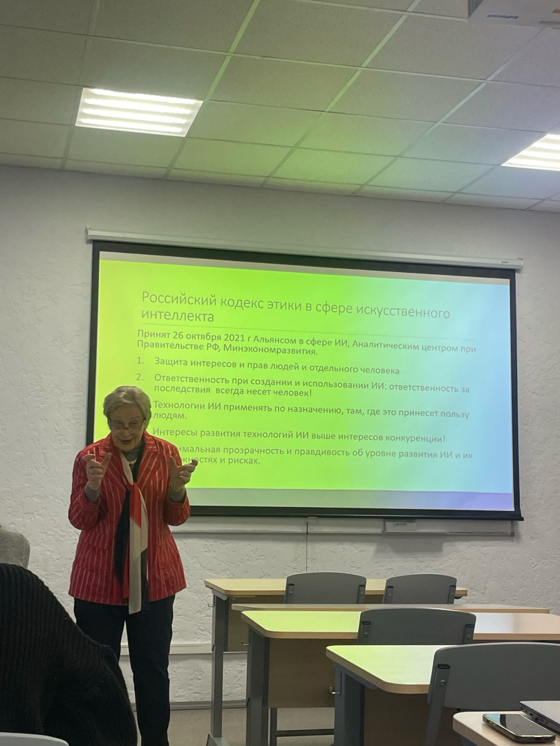 В институте экономики и управления в рамках конференции «Менеджмент ХХ1 века: интеграция в экономике, образовании и науке» состоялась открытая бинарная лекция «Этика взаимодействия с генеративным искусственным интеллектом в образовании».