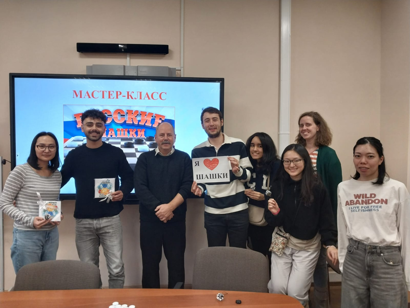 Ведущие помогали и подсказывали новичкам, поэтому каждый смог достойно завершить партию, а некоторые успели узнать и о других вариантах игры: «поддавках» и «уголках».