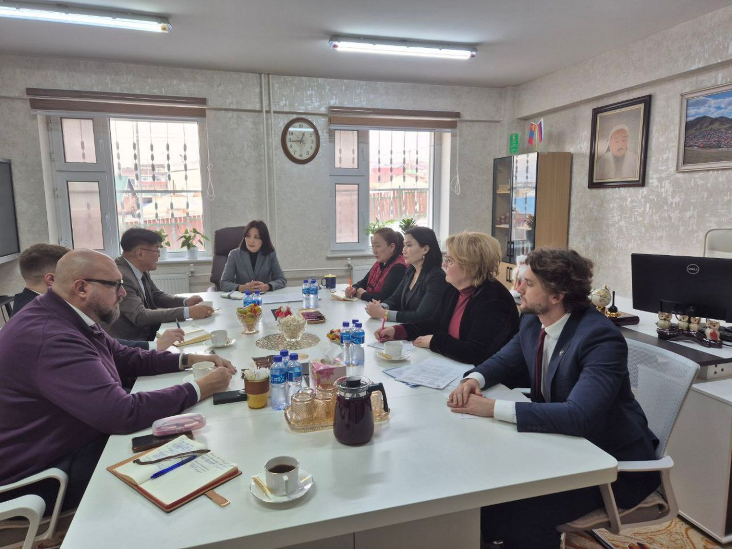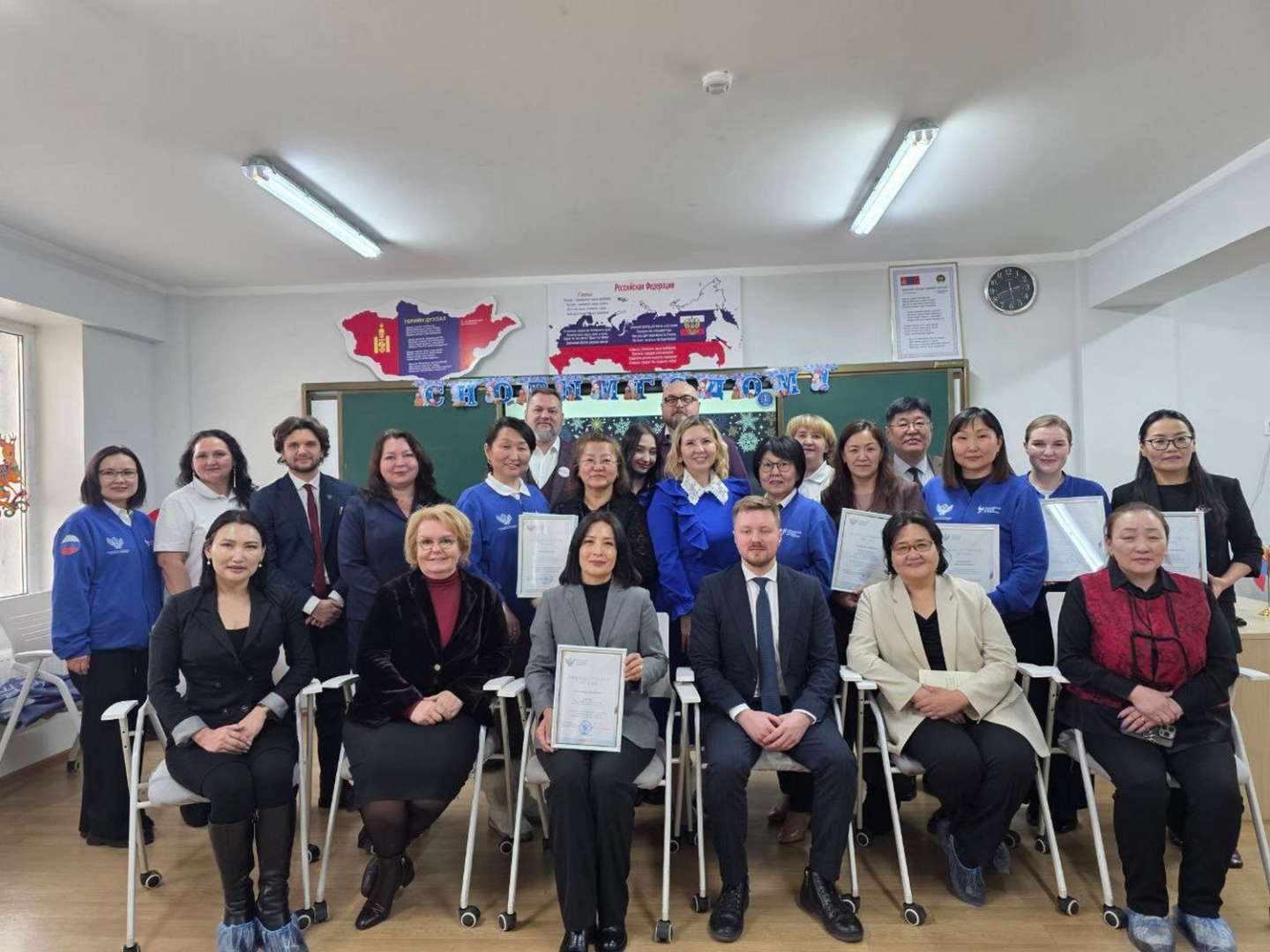 Особое внимание уделено системной работе с монгольскими педагогическими кадрами. Для преподавателей школы № 162 на базе Центра открытого образования на русском языке и обучения русскому языку с сентября по ноябрь 2025 года при поддержке Фонда поддержки гуманитарных наук «Моя история» были проведены курсы русского языка по трем дополнительным образовательным программам. На встрече с директором школы Содовжамцын Чулуунбилэг стороны обсудили перспективы организации круглогодичной работы Центра, в том числе для обеспечения непрерывного обучения преподавателей.