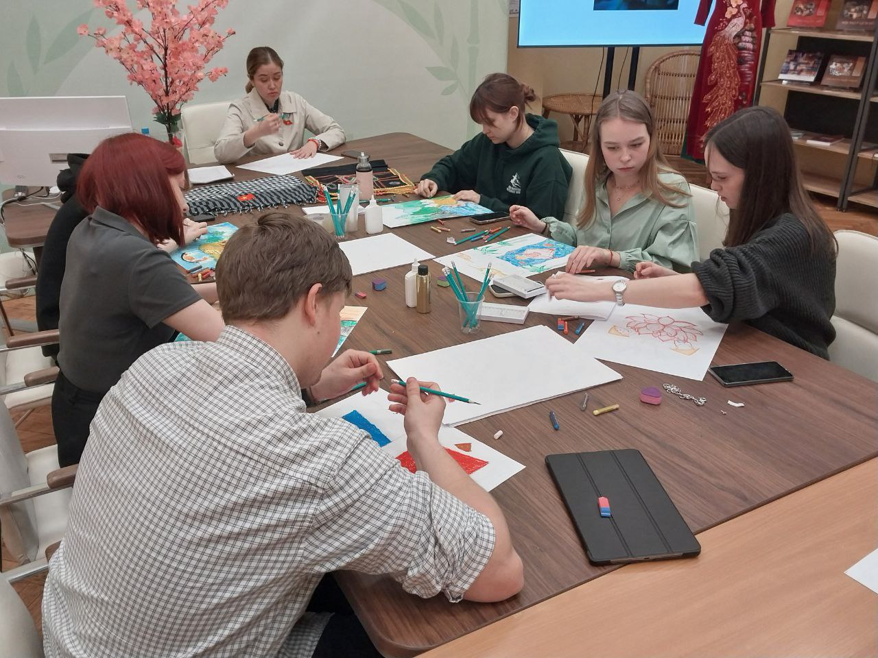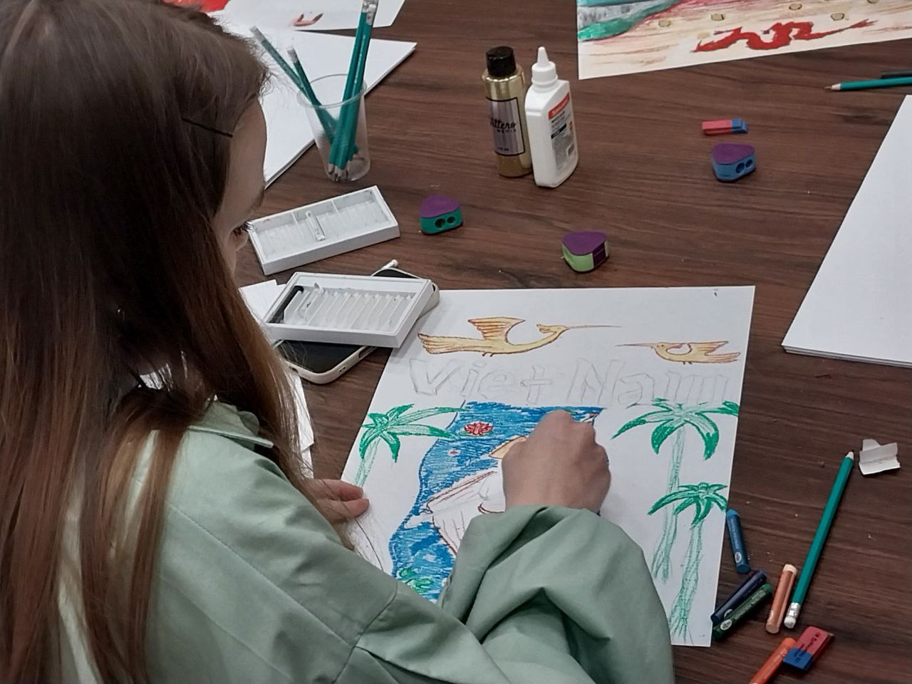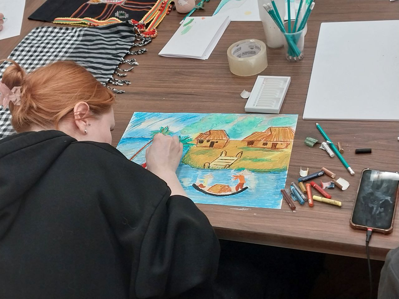 После лекции студенты продемонстрировали полученные знания в формате рисунков по теме «Вьетнам в моих глазах». Легкой кистью своей руки в атмосфере вьетнамских традиционных песен студенты изобразили главные символы страны во всем объеме необычных красок, присущих культуре Вьетнама.