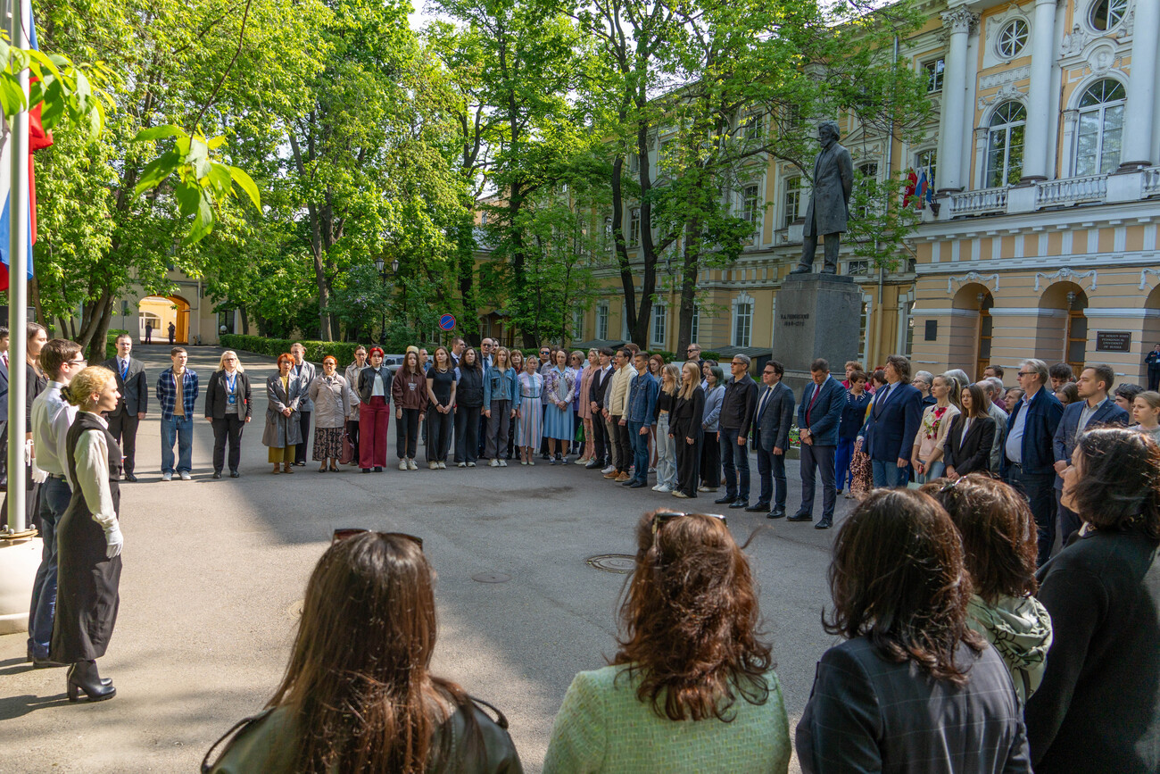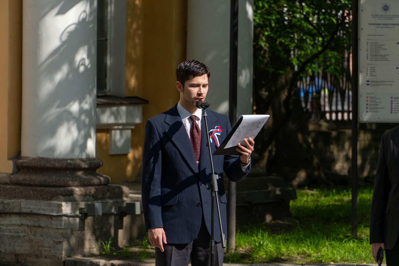 Ведущий церемонии, сотрудник Студенческого дворца культуры РГПУ им. А. И. Герцена Николай Яковлев перечислил значимые даты наступившей недели. 3 июня 1992 года образован Совет Безопасности Российской Федерации. 6 июня отмечается день рождения Александра Сергеевича Пушкина.