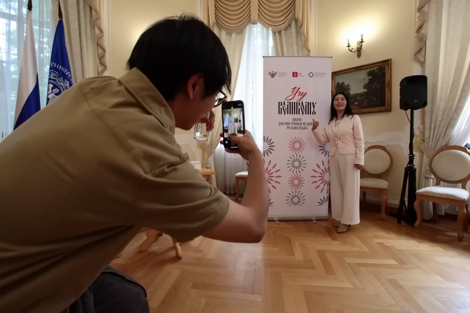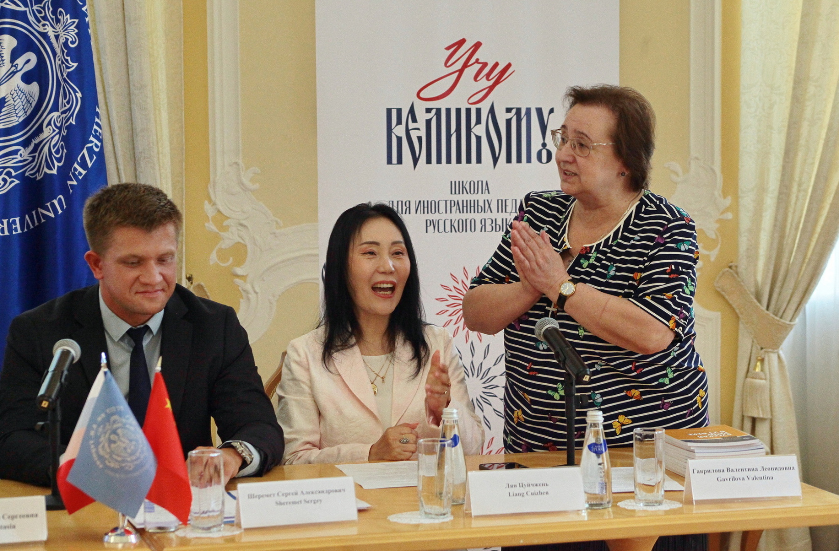 «За неделю интенсивного обучения и погружения в русский язык и культуру вы прошли серьезный путь. Школа «Учу великому» для иностранных преподавателей проводится на базе РГПУ им. А. И. Герцена уже второй раз. В прошлом году была успешно реализована программа школы для педагогов из университетов Узбекистана. Уверен, что при поддержке Министерства просвещения Российской Федерации проект будет и дальше развиваться. Это позволит масштабировать работу по продвижению русского языка и формированию профессионального сообщества преподавателей русского языка из разных стран. Не сомневаюсь, что вы сможете применить на практике полученные знания и распространить приобретенный опыт среди коллег-русистов из Китая. Мы будем рады, если вы передадите своим ученикам любовь к богатой культуре России и русскому языку», — подчеркнул Сергей Шеремет.