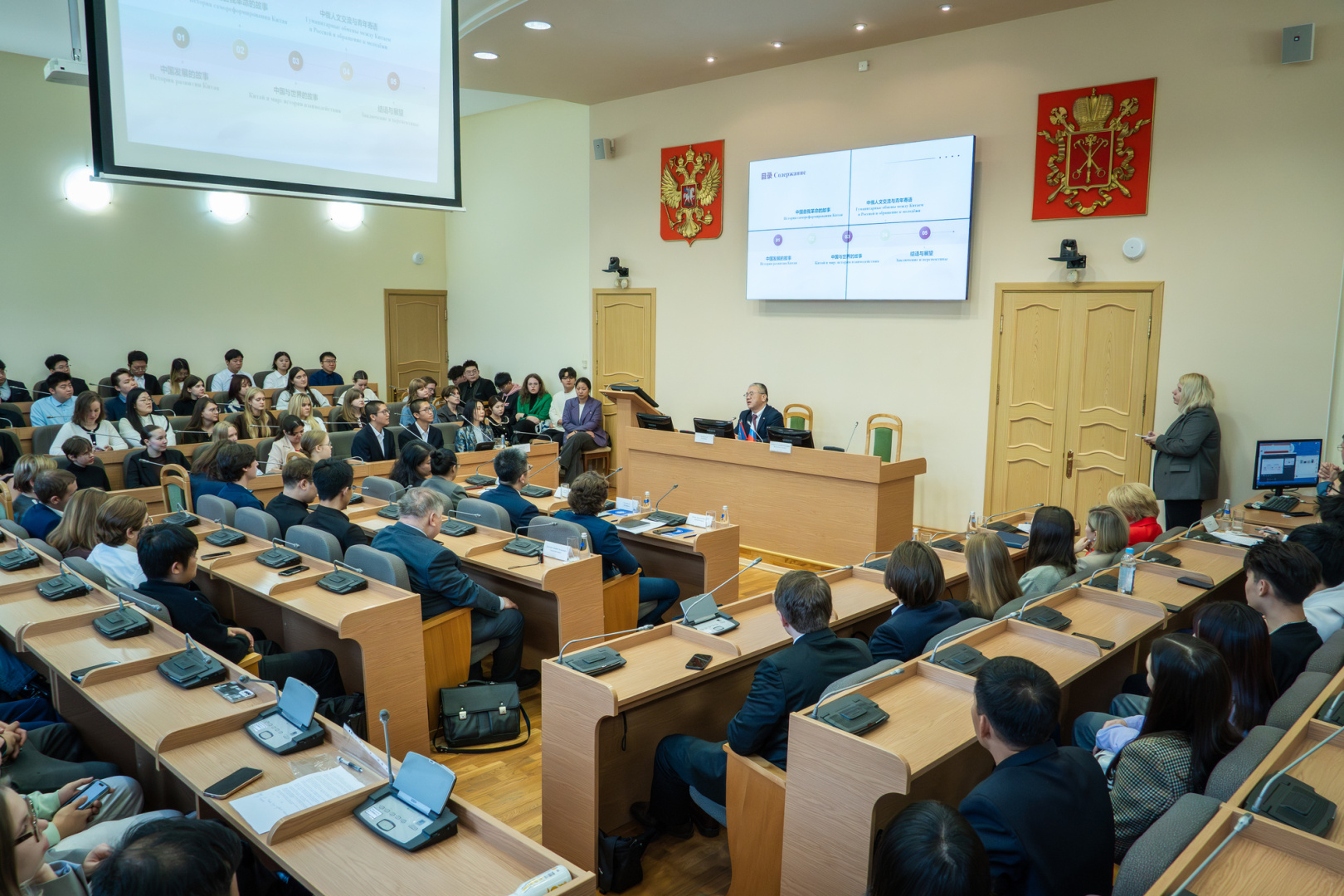 После официальной встречи Генеральный консул провел открытую лекцию для российских и китайских студентов вуза. К аудитории обратилась проректор по общим вопросам РГПУ им. А. И. Герцена Татьяна Рыборецкая: «Мы высоко ценим проявленный интерес к нашему университету со стороны Генерального консульства Китая. Подобные мероприятия имеют огромное значение для укрепления дружеских и профессиональных связей между нашими странами, а для студентов это уникальная возможность получить актуальную и интересную информацию о стране непосредственно от ее официального представителя».