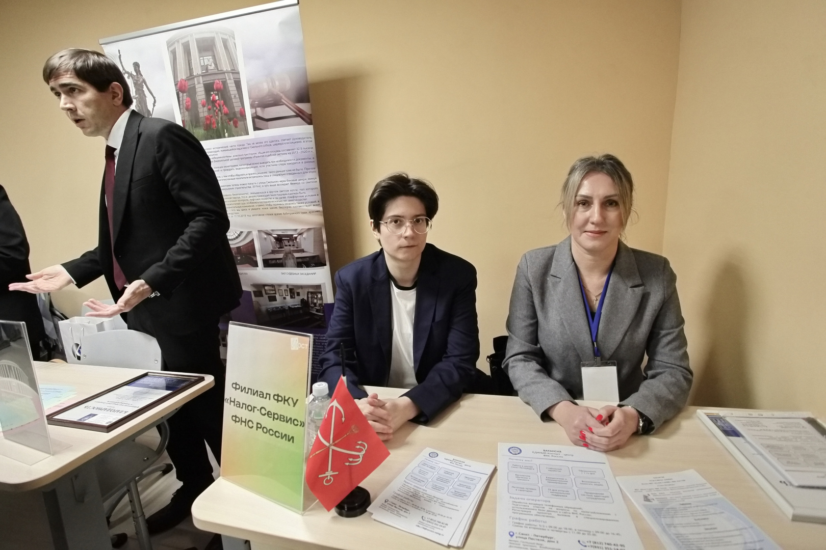 Администрация губернатора и правительства Ленинградской области познакомила участников Дня карьеры с проектом «Кузница кадров 47». Встреча была интересна студентам, рассматривающим государственную службу как перспективное направление профессиональной деятельности. Консультант сектора подготовки кадров отдела подбора, обучения и оценки персонала управления государственной службы и кадров Полина Бурокайте обозначила привлекательность госслужбы в плане социальных гарантий, корпоративной культуры, возможностей повышения квалификации и других плюсов.