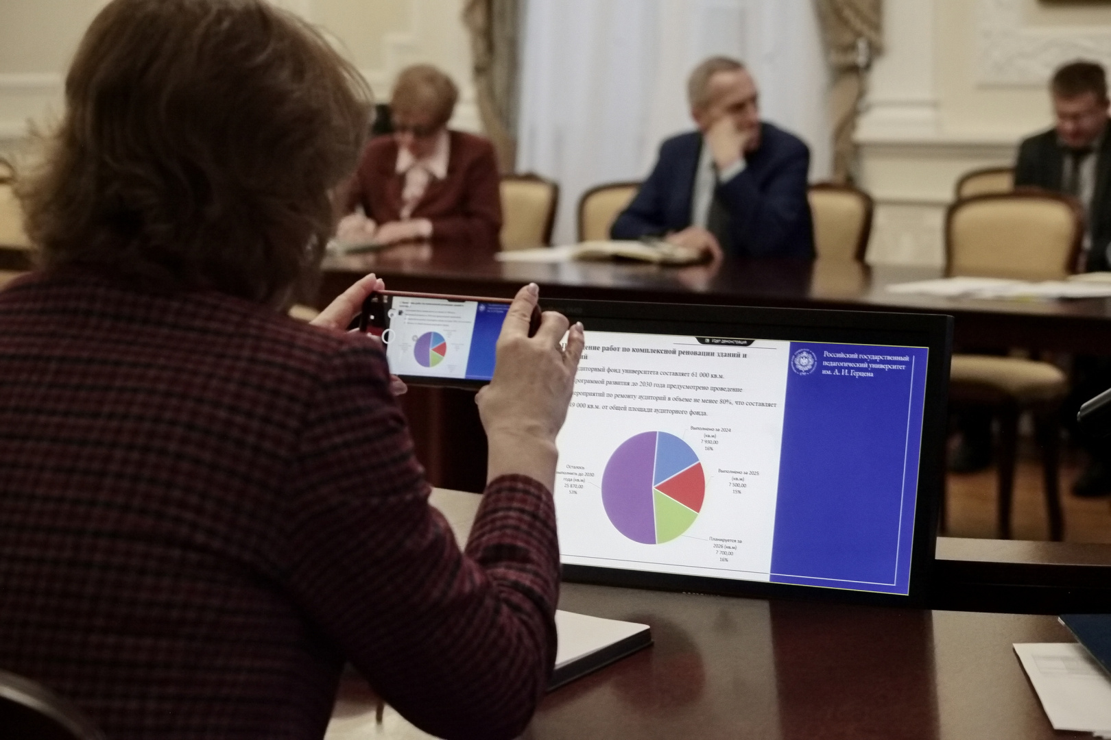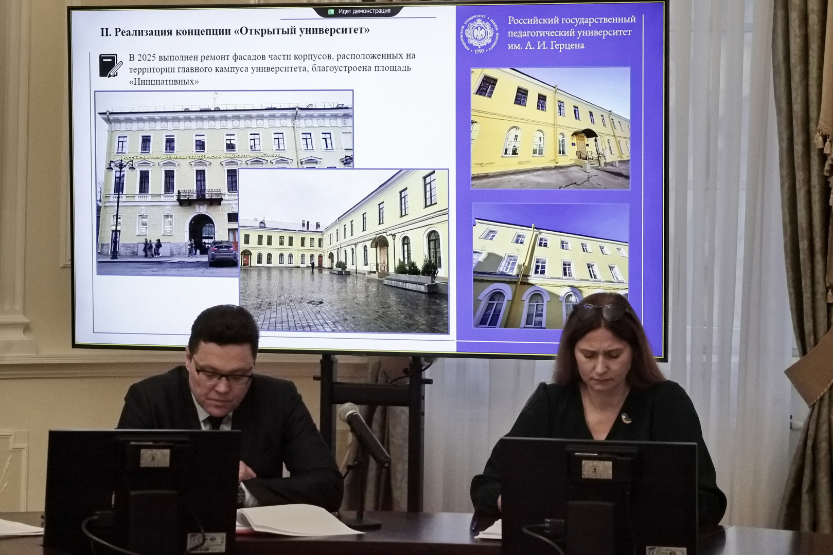 Ректор Герценовского университета Сергей Тарасов подчеркнул, что вуз ведет активную работу по комплексной реновации зданий и аудиторий. «Аудиторный фонд университета составляет 61 тыс. кв. м, и программой развития предусмотрен ремонт не менее 80% из них, что составляет 49 тыс. кв. м», — заявил ректор.