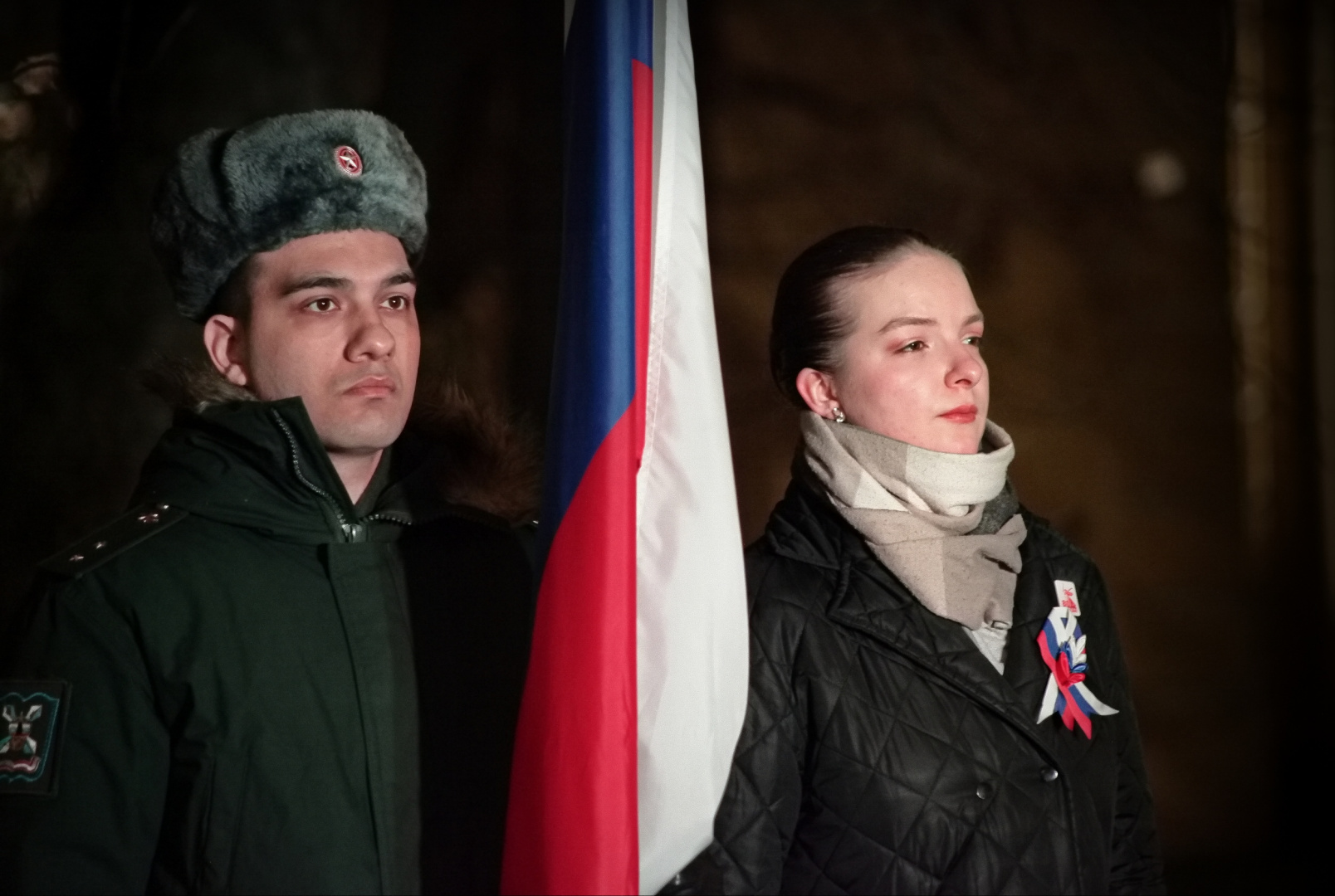 Память о героических защитниках Родины почтили минутой молчания, после чего стихотворение Михаила Дудина «Нет безымянных солдат» исполнила студентка университета, актриса драматического театра Студенческого дворца культуры Оксана Джантемирова.