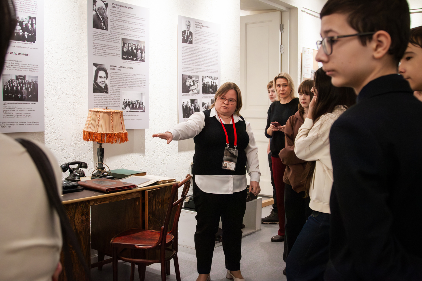 Гостями открытия стали члены клуба «Педагогический автограф», руководители центров Открытого кампуса и учебных подразделений, студенты института управления и экономики и учащиеся школы № 636 Центрального района. Первые экскурсии гостям провели Евгения Горбунова и главный хранитель фондов Елизавета Гурьянова.