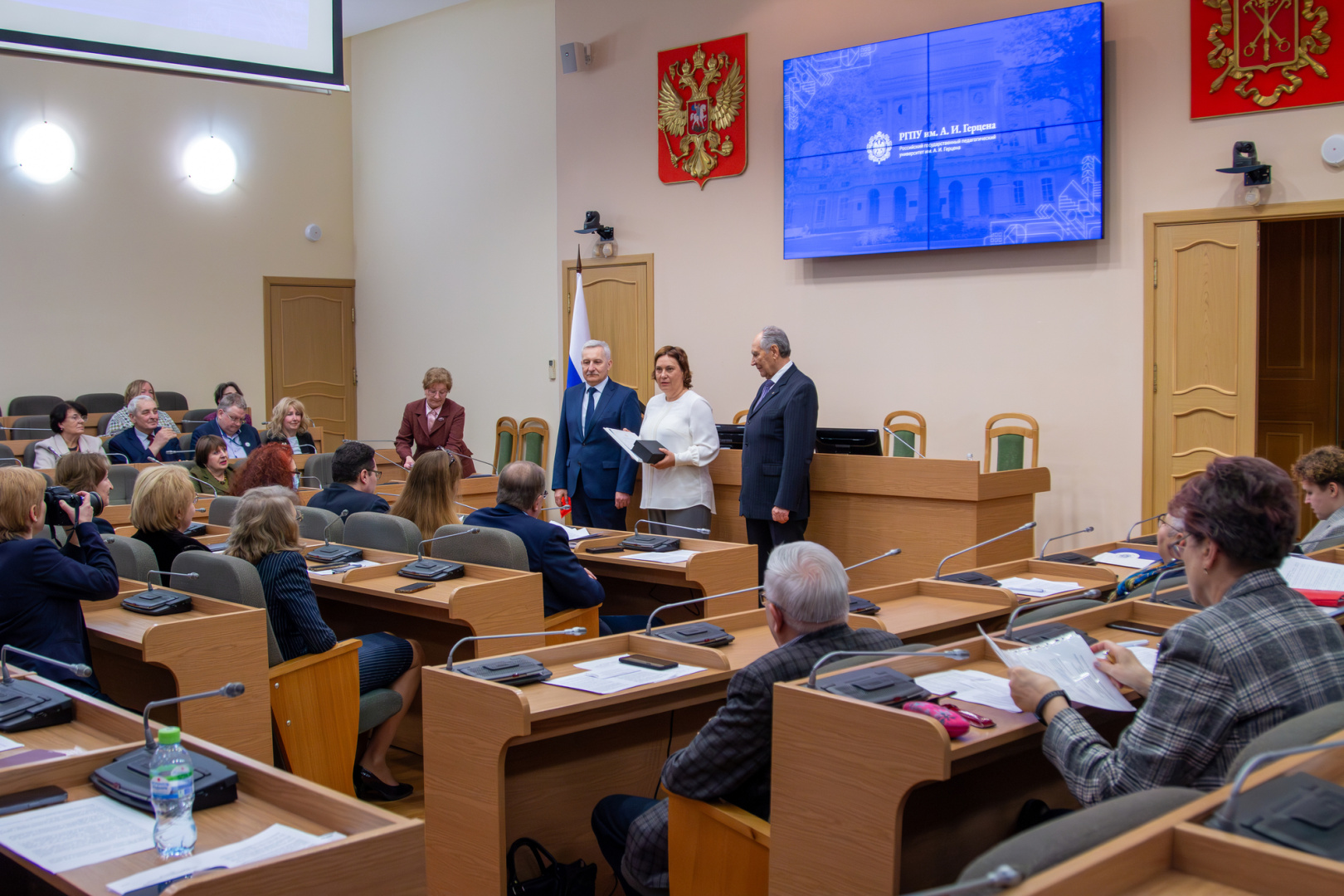 На заседании ученого совета ректор РГПУ им. А. И. Герцена Сергей Тарасов и президент университета Геннадий Бордовский вручили сотрудникам вуза награды. Почетного знака и благодарности Комитета по внешним связям Санкт-Петербурга удостоен директор института востоковедения Андрей Вассоевич, диплома премии Правительства Санкт-Петербурга и грамоты ученого совета — главный редактор газеты «Педагогические вести» Александра Ходан. Министерство просвещения РФ отметило нагрудными знаками «За верность профессии» начальника управления межрегионального сотрудничества в сфере образования Елену Спасскую, помощника проректора по воспитательной деятельности и молодежной политике Наталию Бойко и доцента Нину Богдановскую. Звание «Почетный работник сферы образования Российской Федерации» присвоено профессору Александру Долматову, профессору Павлу Конюховскому и старшему преподавателю Ольге Налимовой. Нагрудным знаком «Молодость и профессионализм» отмечен доцент Алексей Кононов. Университетские награды получили: Медаль императора Павла I — директор института физики Александр Колобов, Почетную грамоту ученого совета — директор института информационных технологий и технического образования Виктор Пронькин.