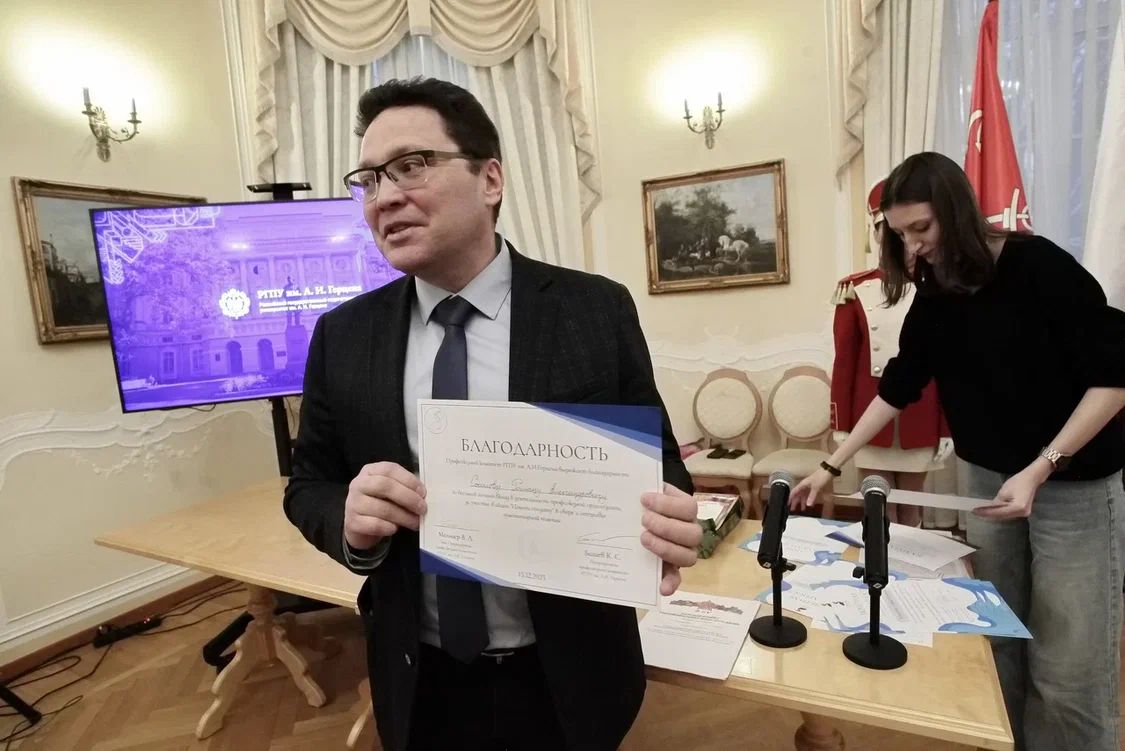 Коллектив РГПУ им. А. И. Герцена в лице ректора Сергея Тарасова получил благодарственное письмо за существенный вклад в дело победы и за поддержку гуманитарных инициатив. Герценовский университет удостоен особого статуса мецената, и представители гуманитарного конвоя «Группировка Север. Курское направление» посетили вуз для персонального награждения.