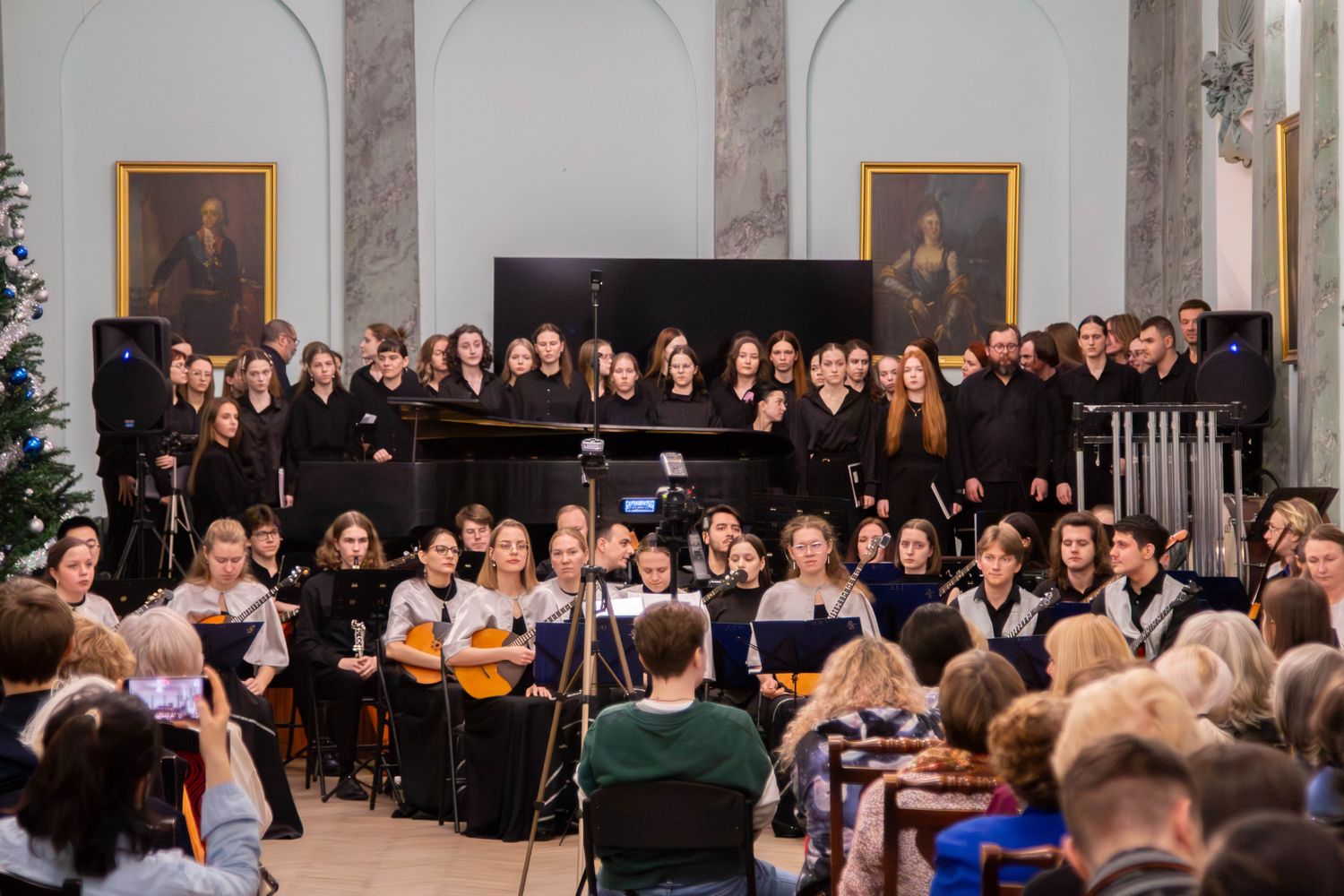 В программу вошли выступления молодёжного русского народного оркестра «Серебряные струны» под руководством Александра Афанасьева и смешанного хора бакалавриата института музыки, театра и хореографии (художественный руководитель — профессор, заслуженный деятель искусств Республики Беларусь Игорь Матюхов, хормейстеры — Ксения Красикова и Эдуард Черепнин, концертмейстер — Татьяна Торбина). Сольные партии исполнили лауреаты международных конкурсов Валерия Белякова, Екатерина Иванова, Дарья Чувасова, Геворг Караян, Александра Горбачева и Георгий Клетинский. Текст читала заслуженная артистка РФ, преподаватель института музыки, театра и хореографии Мария Лаврова.