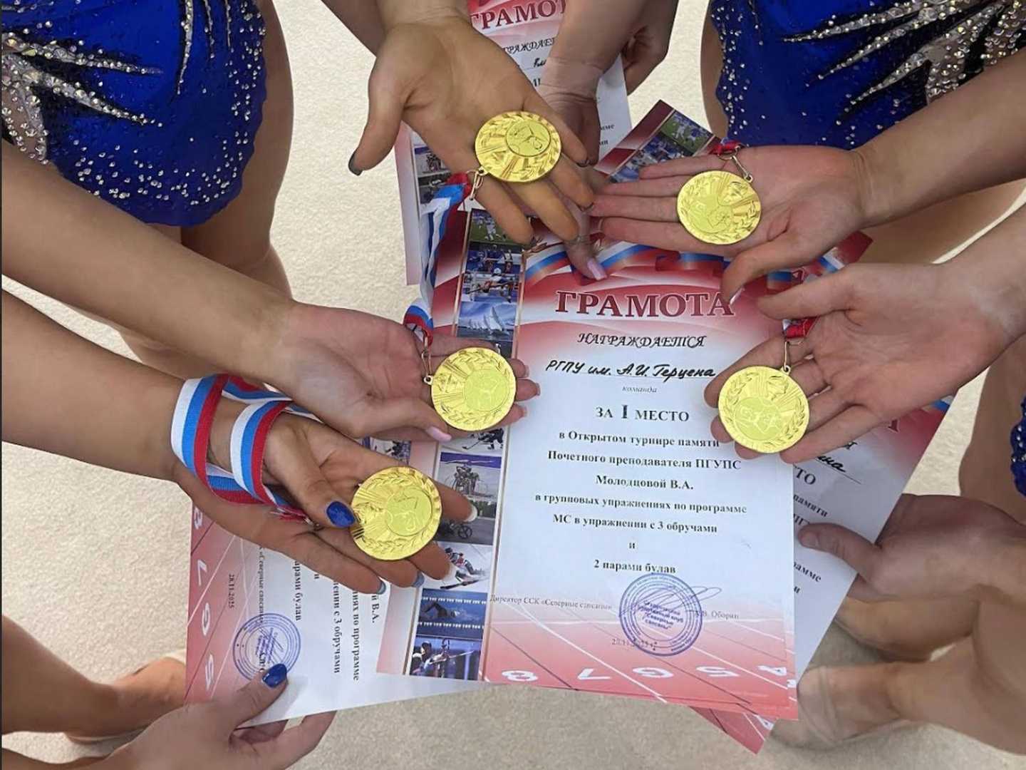 Спортсмены соревновались в индивидуальной и групповой программе 2 разряда, 1 разряда, кандидатов в мастера спорта и мастеров спорта. Команда мастеров спорта под руководством заслуженного тренера России Инны Быстровой достойно представила Герценовский университет, выступив в программе с тремя обручами и двумя парами булав. Девушки показали высокий уровень мастерства, слаженность и выразительность, что позволило им занять 1 место в данном виде программы.