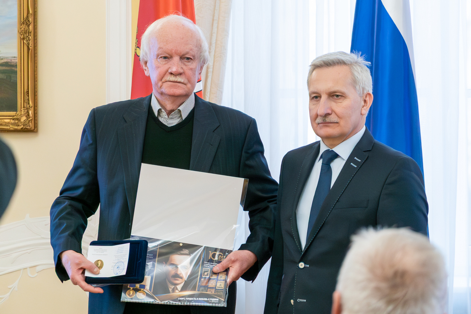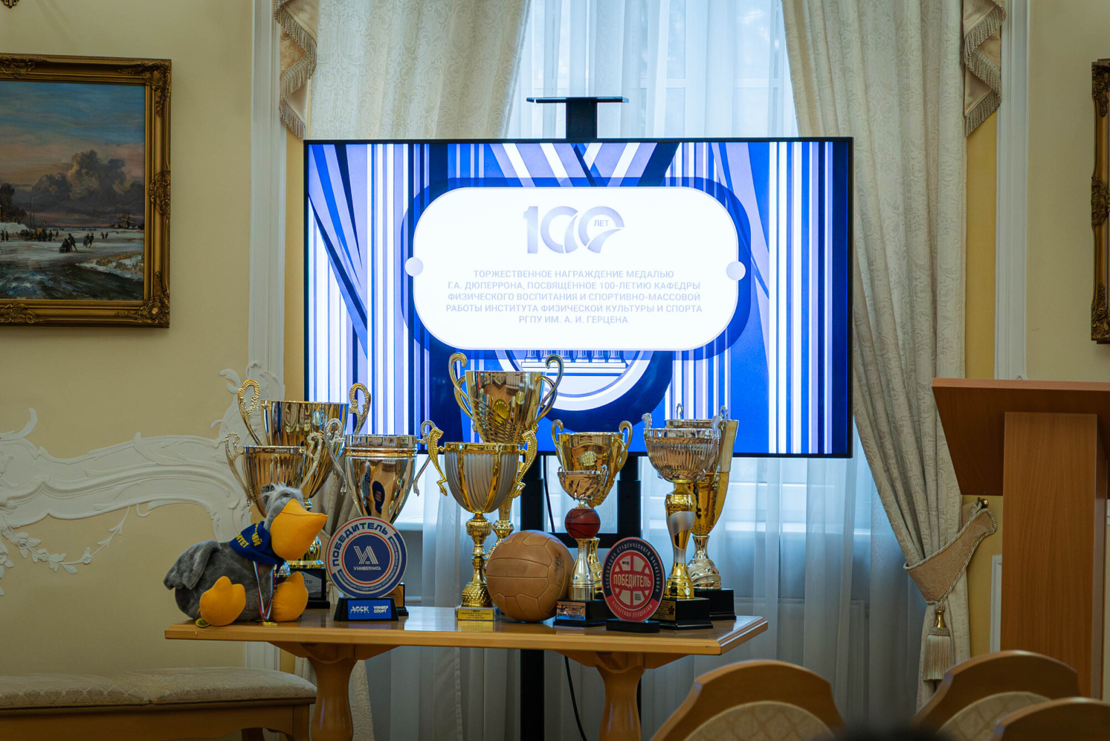 К 100-летнему юбилею кафедры физического воспитания и спортивно-массовой работы института физической культуры и спорта в Герценовском университете вручили юбилейные медали Георгия Александровича Дюперрона — основоположника российского футбола и олимпийского движения, первого заведующего кафедрой.