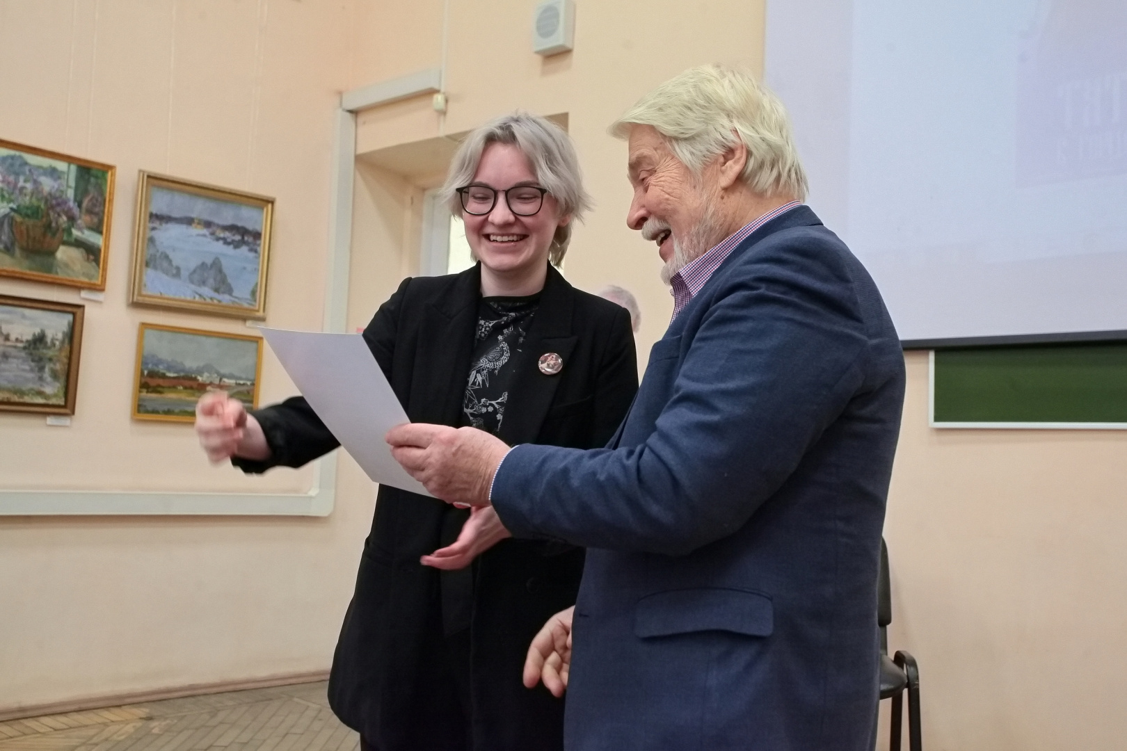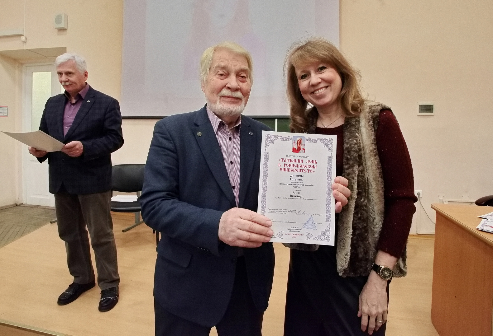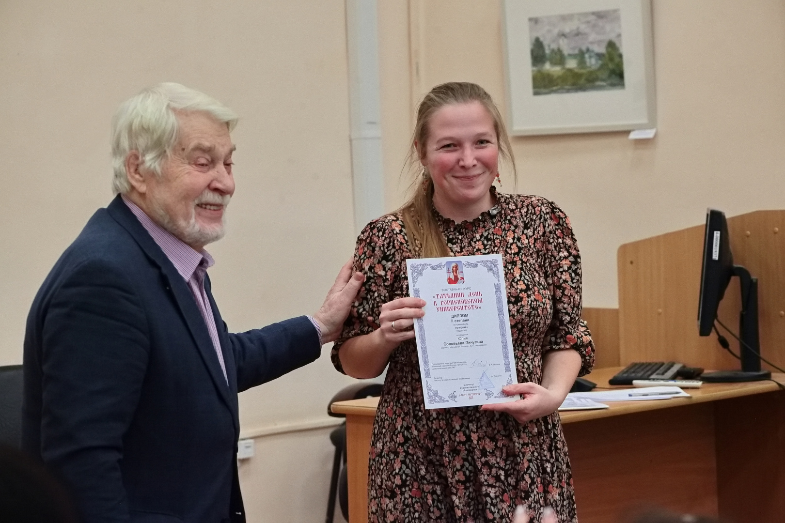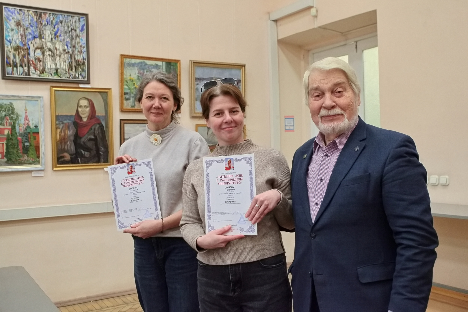 Один из инициаторов выставки, народный художник России, председатель жюри конкурса Валерий Леднев поблагодарил авторов за представленные работы, которые, по его словам, являются особым подарком к празднику, в который художники вложили самое дорогое — личное восприятие, талант и сердечное отношение к теме Татьянина дня.