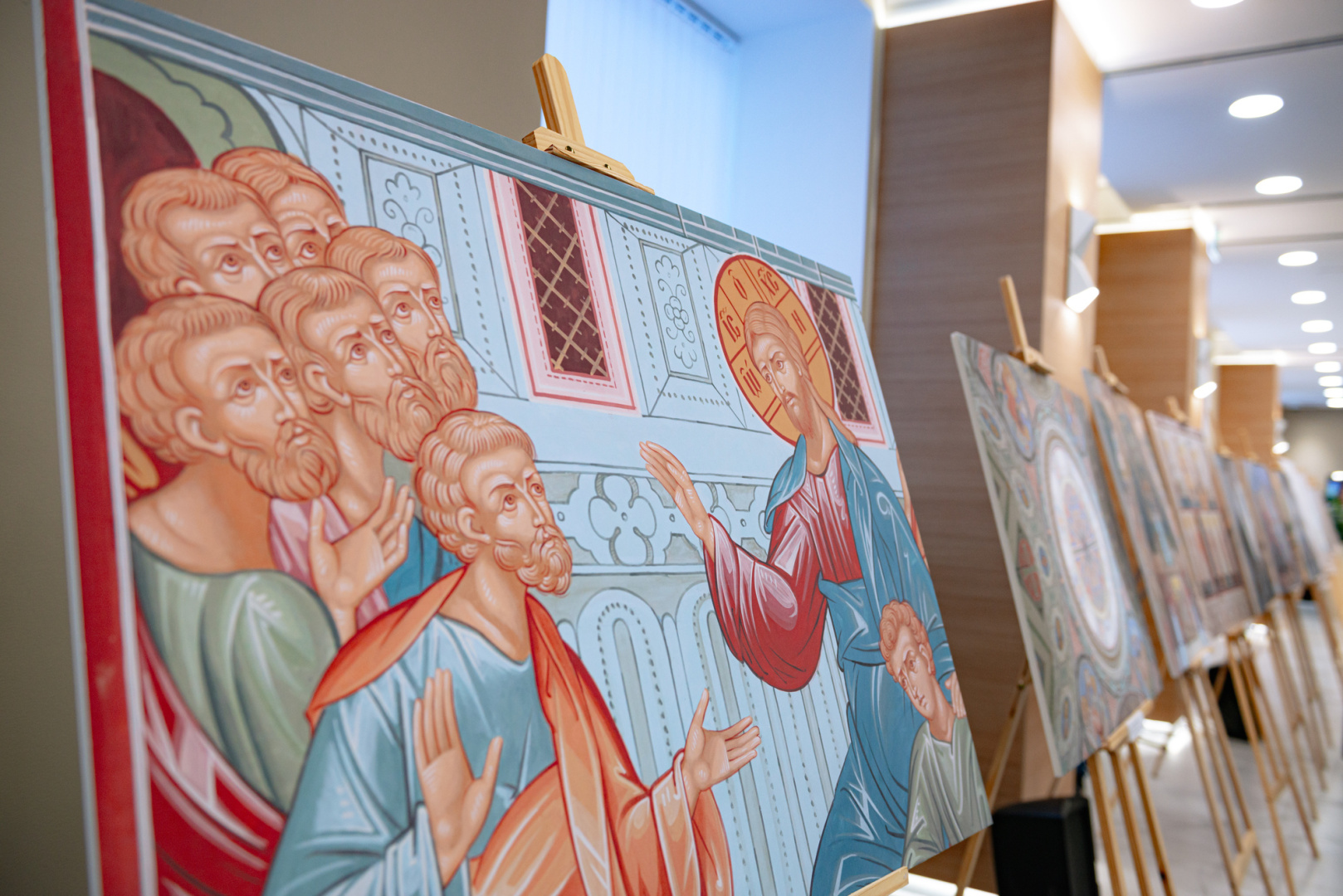 Экспозиция включает работы преподавателей кафедры живописи РГПУ им. А. И. Герцена Александра Калинина и Романа Усова и ведущего художника мастерской церковного искусства «Образ» Андрея Бурлакова. Здесь собраны лучшие произведения последних 15 лет, посвященные оформлению интерьеров храмов и росписи монументальных ансамблей.