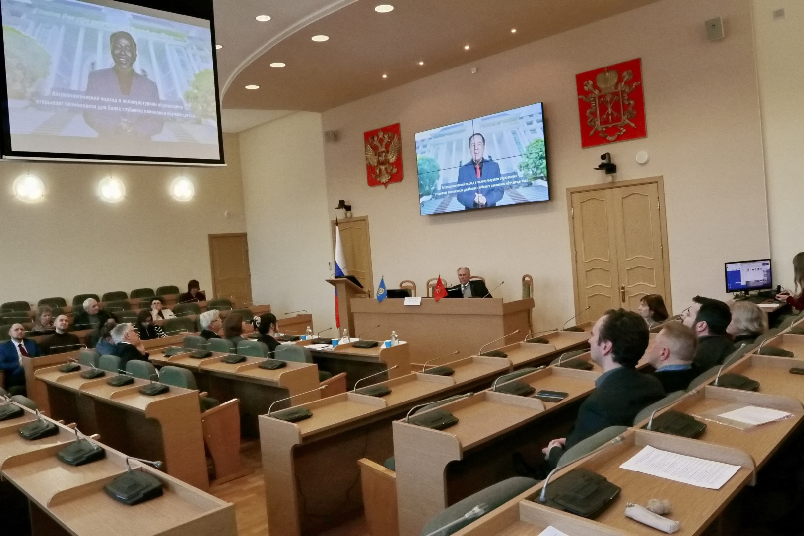 Проведение международной научно-практической конференции «Антропологический поворот в поликультурном образовании: ценности, идентичности, образовательные стратегии» инициировано кафедрой ЮНЕСКО по педагогическим наукам «Образование в поликультурном обществе» Герценовского университета. В рамках научного события прошло пленарное заседание, где были обозначены основные подходы к созданию педагогической парадигмы. Кроме того, конференция включала церемонию вручения мантии и диплома почетного доктора РГПУ им. А. И. Герцена швейцарскому философу и политическому деятелю Ги Меттану и лекцию сенатора Совета Федерации Владимира Чижова о вызовах современного миропорядка и буднях российских дипломатов.