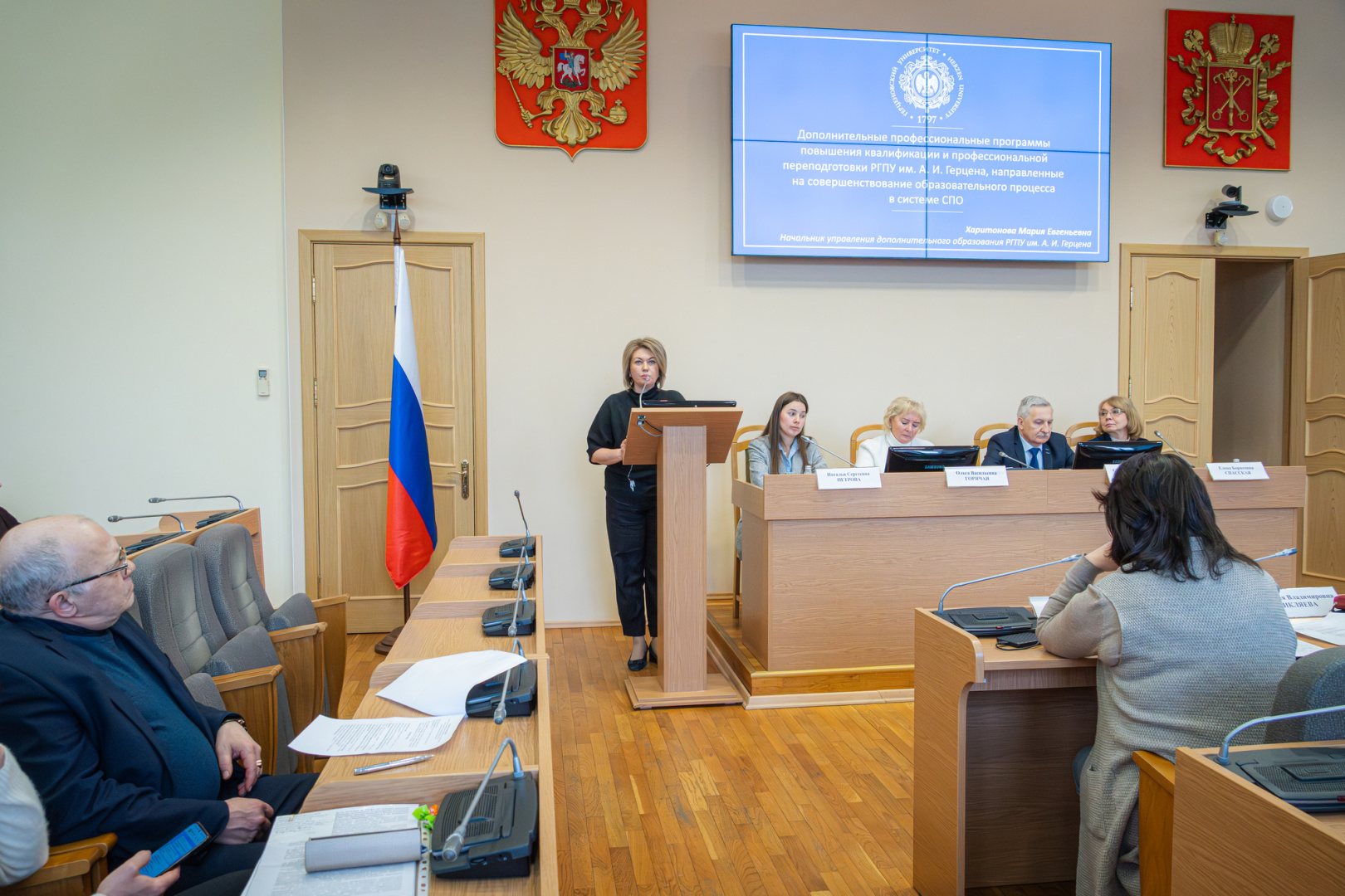 Более 80 руководителей организаций СПО Санкт-Петербурга и эксперты РГПУ им. А. И. Герцена обсудили актуальные вопросы развития среднего профессионального образования, включая научные исследования, программы повышения квалификации педагогов и руководителей, перспективы продолжения образования выпускников колледжей в педагогическом вузе. Участие в обсуждении приняли представители Комитета по образованию и Комитета по науке и высшей школе Правительства Санкт-Петербурга.
