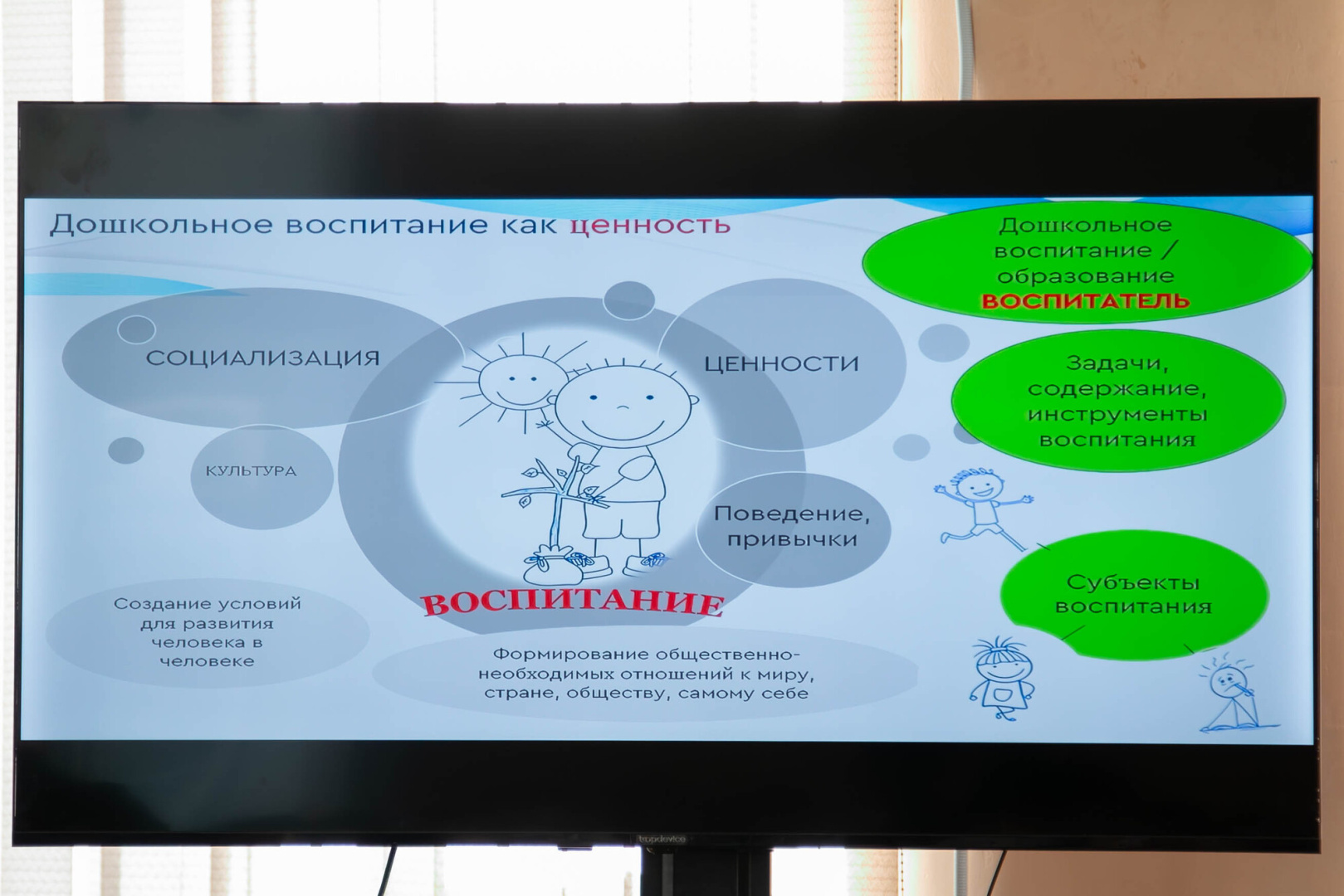 По мнению заведующей кафедрой дошкольной педагогики института детства РГПУ им. А. И. Герцена Александра Гогоберидзе, сегодня дошкольное образование выстраивается на базе воспитательной работы с детьми, связанной с формированием у них единой системы духовно-нравственных ценностей, и создания общего образовательного пространства для развития и воспитания ребенка от рождения до 8 лет. Эти аспекты следует совершенствовать путем определения и привлечения научно-технологических основ отечественного дошкольного образования.