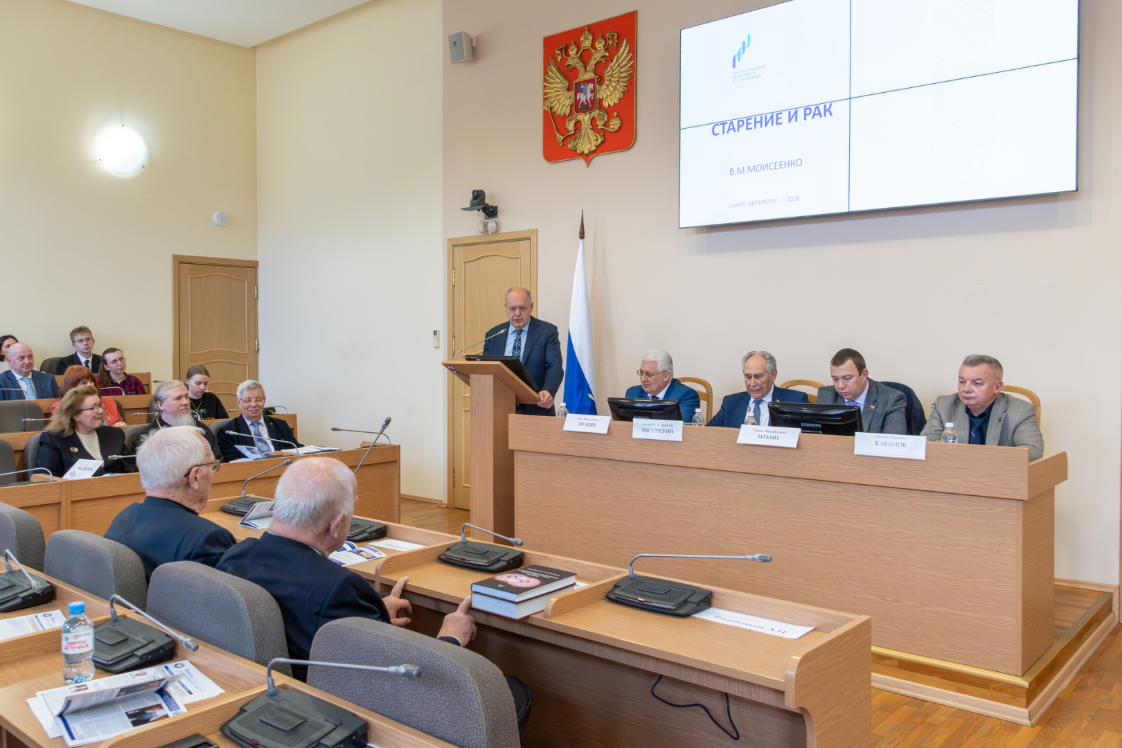 О генетической предрасположенности к онкологическим заболеваниям рассказал президент Геронтологического общества при РАН Владимир Моисеенко. Перспективные научные разработки Института экспериментальной медицины, направленные на продление периода активного долголетия, представил директор института Олег Эргашев. Тенденции развития гериатрии обозначил начальник Госпиталя для ветеранов войн, главный внештатный специалист-гериатр Комитета по здравоохранению Санкт-Петербурга Максим Кабанов.