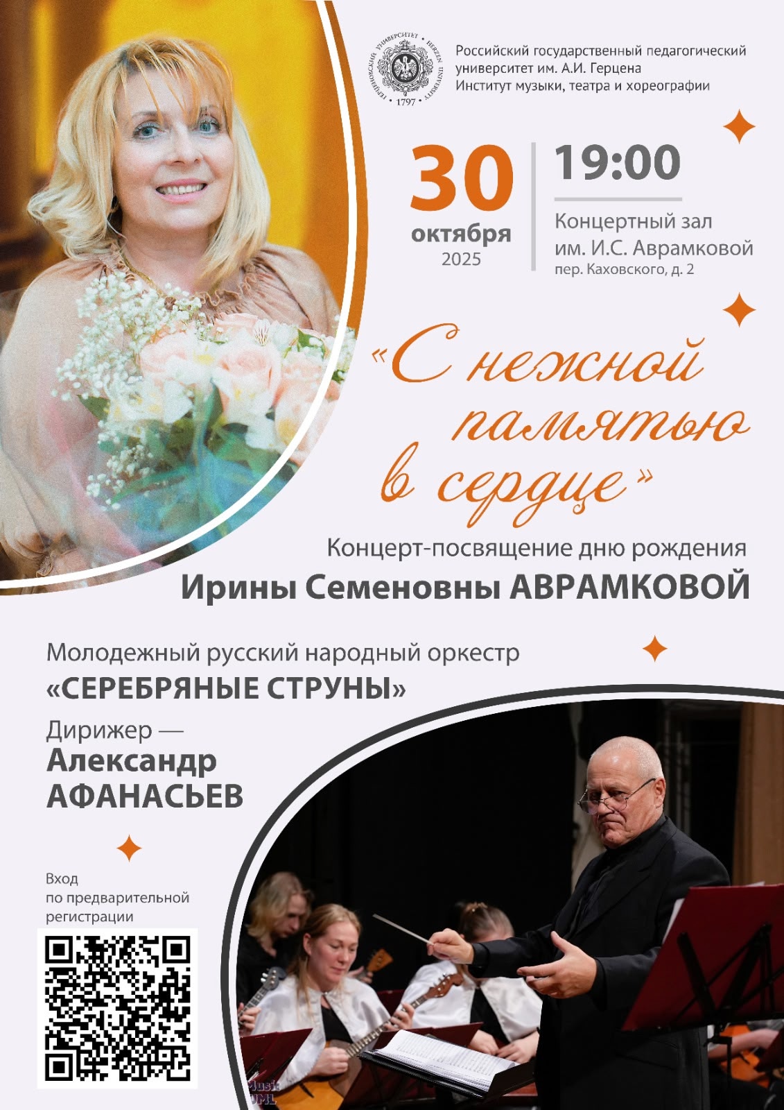Институт музыки, театра и хореографии приглашает на концерт 30 октября в 19:00. Вход по предварительной регистрации (Афиша и qr-код для регистрации).