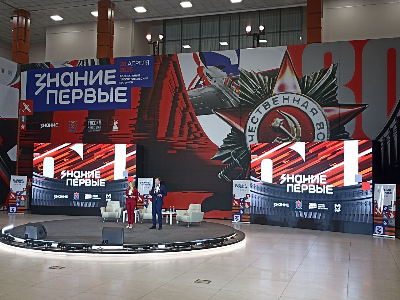 На площадке Санкт-Петербургского государственного бюджетного учреждения культуры «Музейно-выставочный центр» прошел федеральный просветительский марафон «Знание.Первые», организованный обществом «Знание» и приуроченный к 80-летию Победы в Великой Отечественной войне.