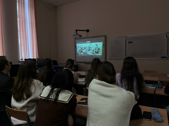 Мы вспомнили ключевые события первых лет войны, прочитали и обсудили отрывки из воспоминания очевидцев и посмотрели редкие фотоматериалы. Атмосфера встречи получилась по-настоящему живой: студенты задавали вопросы, делились своими размышлениями и искренне сопереживали героям того времени.