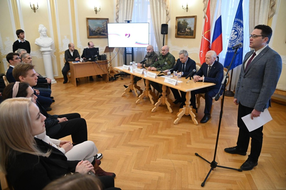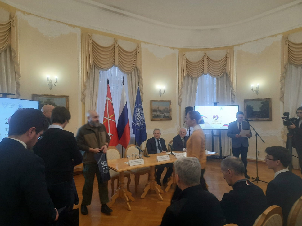 Участники СВО Алексей Махотин и Дмитрий Терешенков в торжественной обстановке наградили студентов и сотрудников Герценовского университета, принимающих активное участие в волонтерской деятельности в зоне Специальной военной операции, и поблагодарили их за содействие.