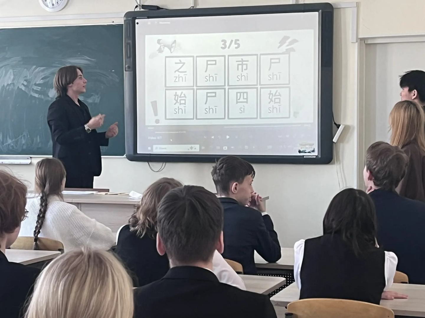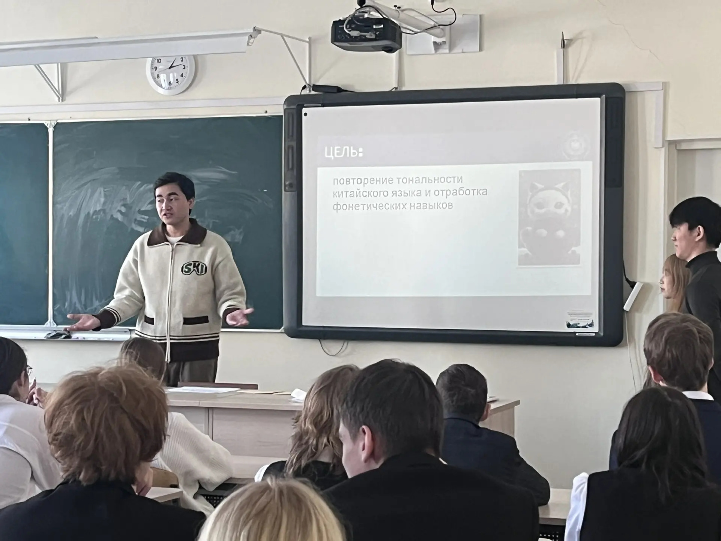 На уроке учащиеся узнали об особенностях китайского произношения, выучили скороговорки на китайском языке и поучаствовали в интерактивной игре.