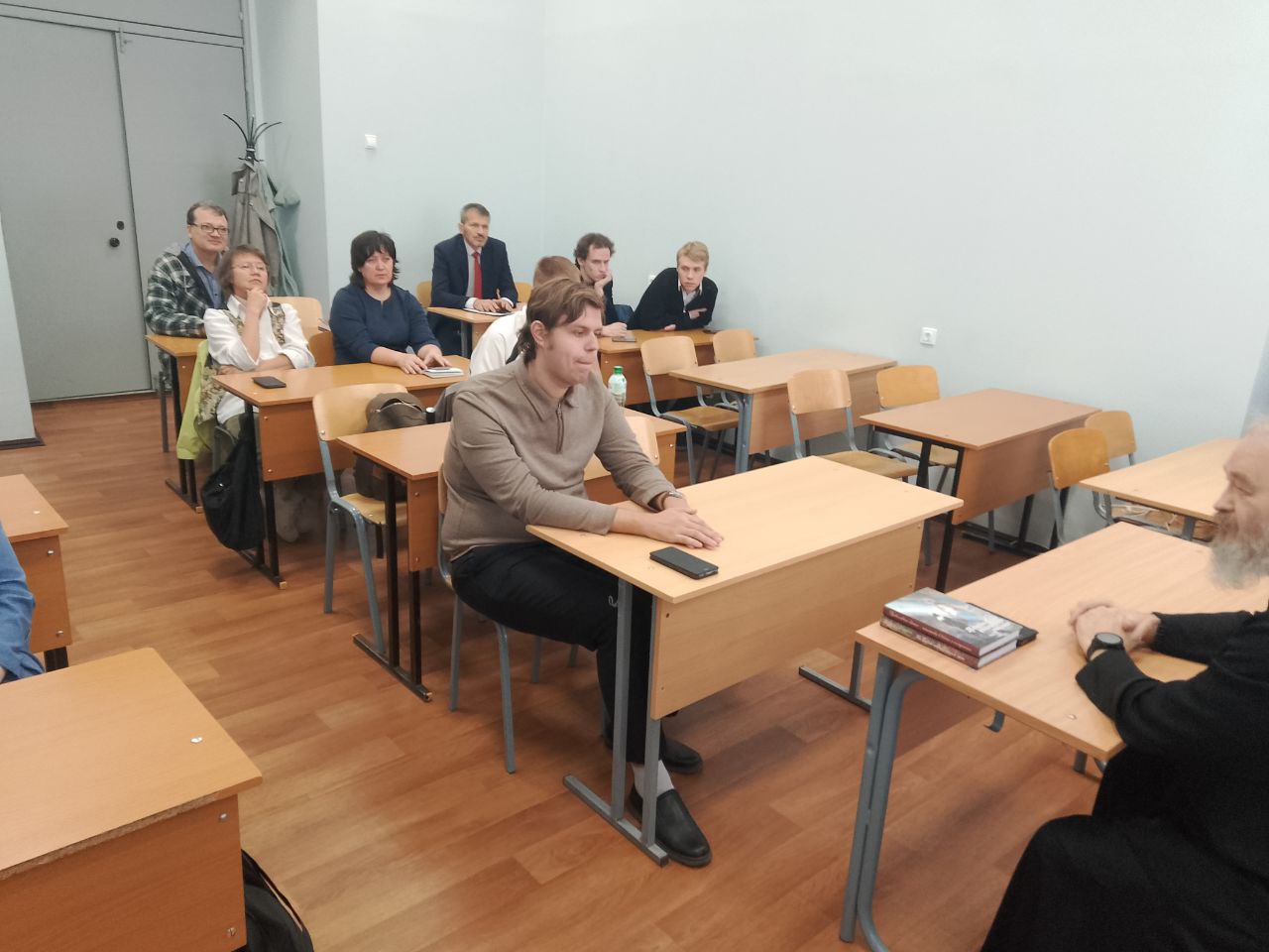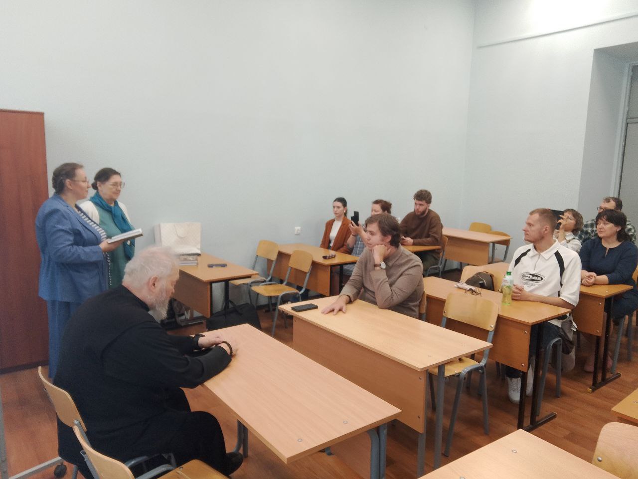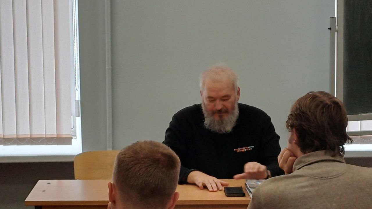 В институте истории и социальных наук Герценовского университета состоялся семинар-презентация книги Е.Ю. Коржовой и Е.К. Веселовой «На войне неверующих нет». В нем приняли участие главный военный священник СВО, кавалер трех орденов Мужества отец Дмитрий Василенков, доктор психологических наук, профессор Е.Ю. Коржова, доктор психологических наук, профессор Е.К. Веселова, доктор философских наук, профессор А.М. Прилуцкий, научный сотрудник центра профилактики экстремизма в сфере образования и молодежной среде А.М. Богачев (ведущий мероприятия), директор организационно-кадрового центра «Специальный курс» И.А. Сидоренко и другие.