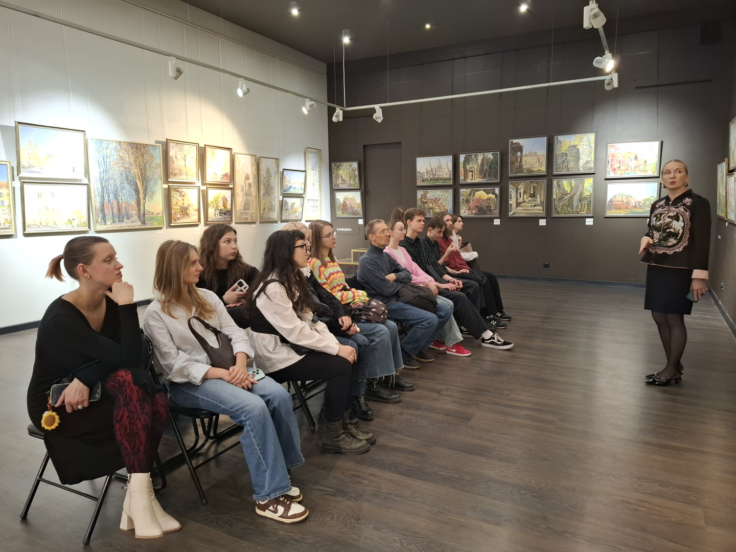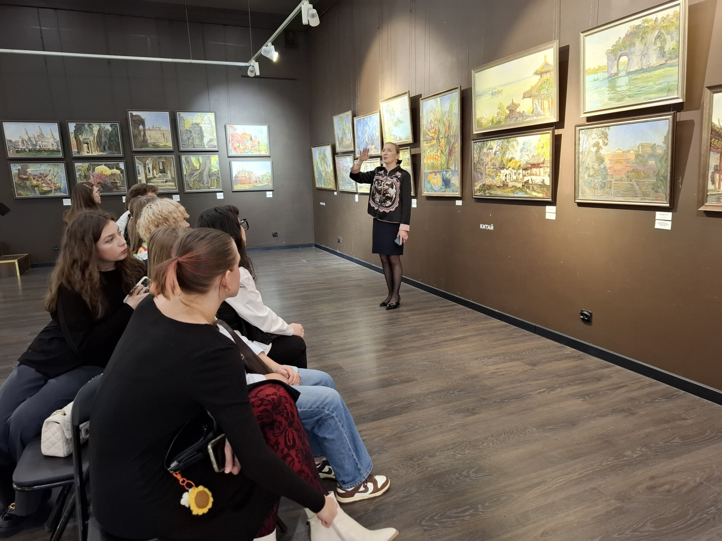На занятиях по курсу «Основы проектной и экспертной деятельности в сфере культуры» (профессор Марина Магидович) будущие педагогики-культурологи встретились на ретроспективной выставке Алены Васильевой «Автобиография в цвете и линиях» с автором работ. Алена Александровна провела экскурсию по выставочным залам Санкт-Петербургского союза художников, детально рассказала о сложностях в организации международных музейных проектов, особенностях работы художников в иноязычной и инокультурной среде, поделилась секретами работы в Китае, Вьетнаме, Камбодже, Таиланде, Марокко и других странах Европы и Азии, где художнику удалось работать и экспонироваться. Особенно интересен был рассказ о тонкостях работы в архитектурном пространстве родного Санкт-Петербурга.