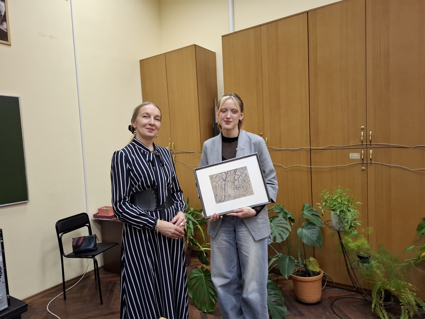 Яркие эмоции и впечатления о выставке подтолкнули будущих культурологов-искусствоведов поучаствовать в конкурсе, объявленном организаторами выставки на лучшую рецензию. В качестве победителей жюри конкурса выделило работы Веры Серовой, Софьи Сатомской, Галины Волчковой, Святослава Масленникова, Юрия Чернышева, Александры Биткиной и Елизаветы Румянцевой. Все победили в качестве призов получили оригинальные работы Алены Васильевой, что у студентов вызвало настоящий восторг и искренние аплодисменты!