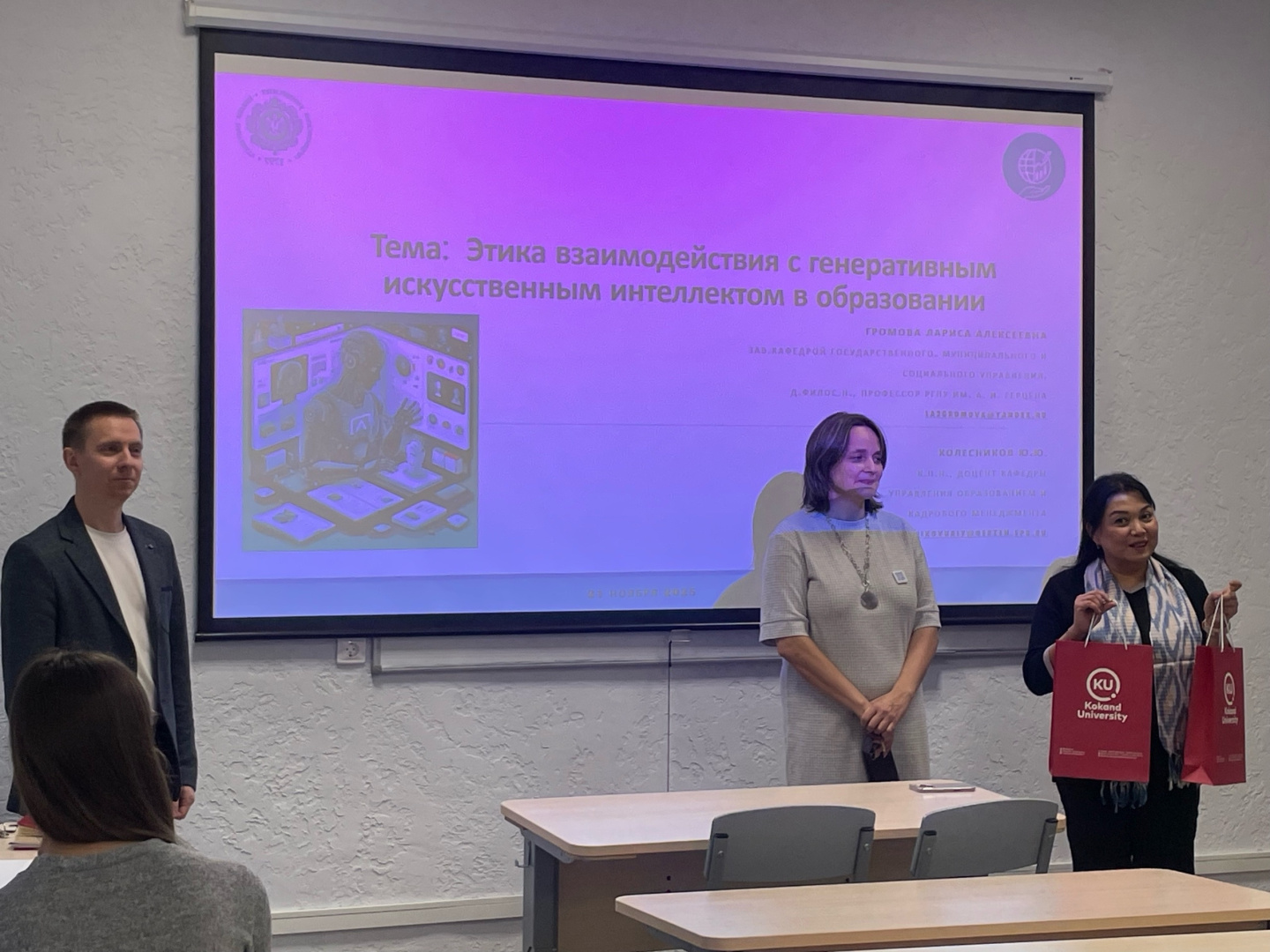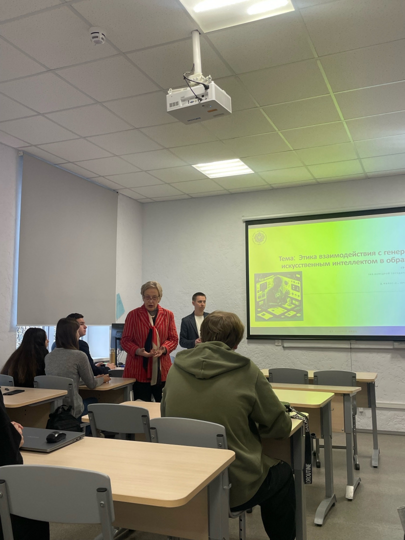 В институте экономики и управления в рамках конференции «Менеджмент ХХ1 века: интеграция в экономике, образовании и науке» состоялась открытая бинарная лекция «Этика взаимодействия с генеративным искусственным интеллектом в образовании».