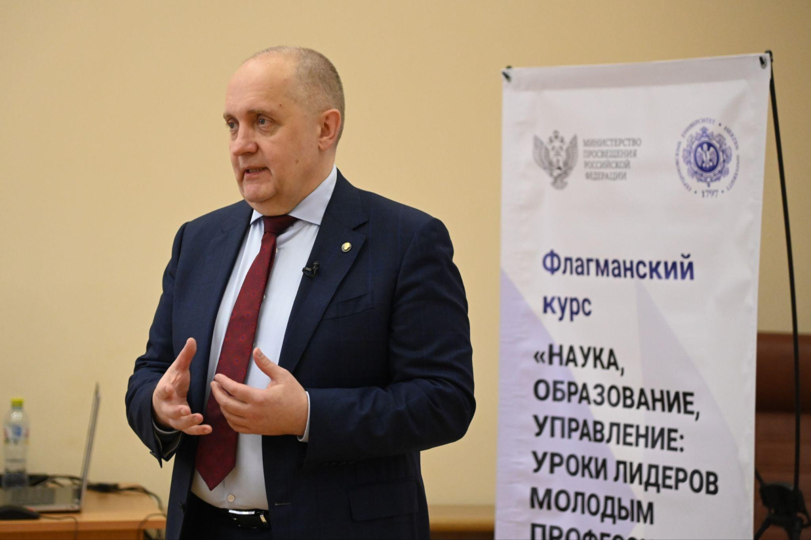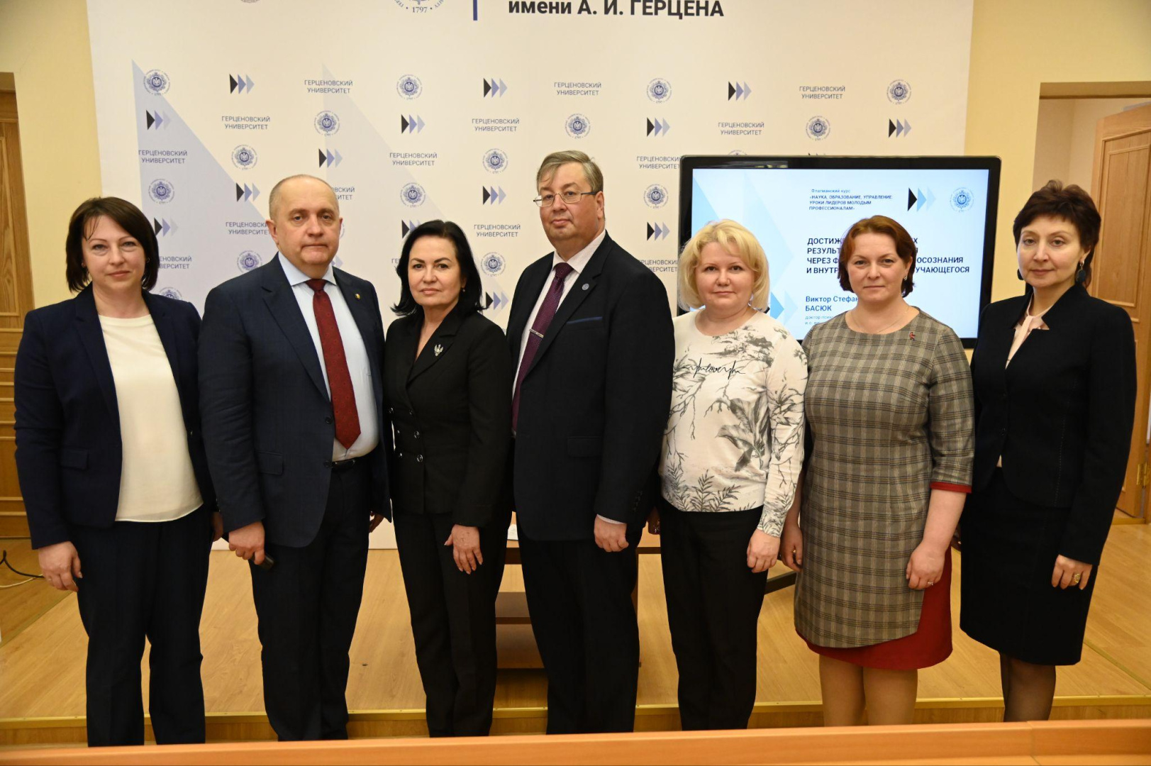 В рамках флагманского курса «Наука, образование, управление: уроки лидеров молодым профессионалам» в Герценовский университет был приглашён доктор психологических наук, академик РАО Виктор Басюк. Спикер рассмотрел в своём докладе достижения личностных результатов образования через формирование самосознания и внутренней позиции обучающегося. «Наверное, моим самым правильным и важным решением было то, что, начиная с третьего курса, я пошёл работать в систему образования. Первый мой педагогический опыт, который я могу назвать самым ярким, запоминающимся, важным и сложным для моей профессиональной деятельности, — это то время, когда я работал сначала воспитателем, потом руководителем, а затем и директором детского дома. Это, конечно, особая среда, но именно так началось моё увлечение наукой о развитии личности человека и в том числе интерес к тем особенностям, которые на неё влияют», — отметил он.