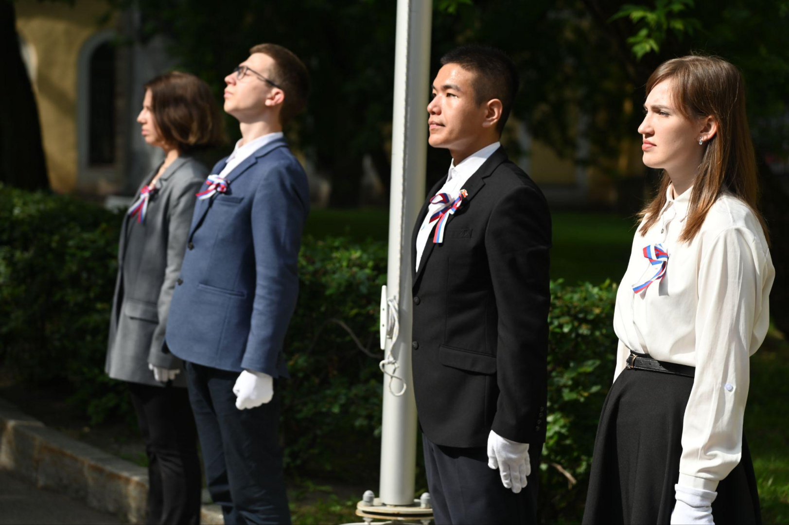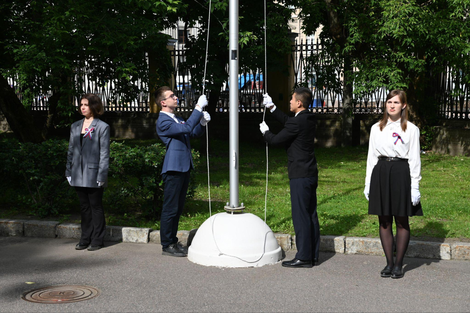 17 июня, в первый рабочий и учебный день недели, в РГПУ им. А. И. Герцена по традиции состоялась торжественная церемония поднятия Государственного флага Российской Федерации. Посмотреть на развевающийся под звуки гимна флаг пришли студенты и сотрудники университета, руководители структурных и учебных подразделений, а также заместители деканов и директоров по воспитательной работе.