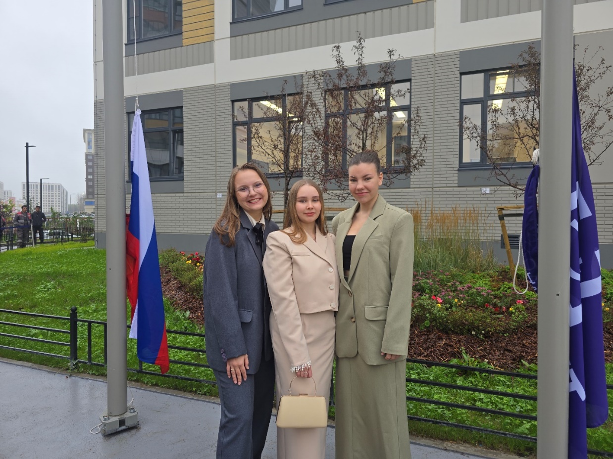 Выпускники проекта «Команда школьных педагогов «под ключ» стали активными участниками торжественной линейки. Почетное право поднять флаг России было предоставлено учителю химии Алине Кузнецовой, учителю истории Дарье Смирновой и учителю английского языка Анне Седых.