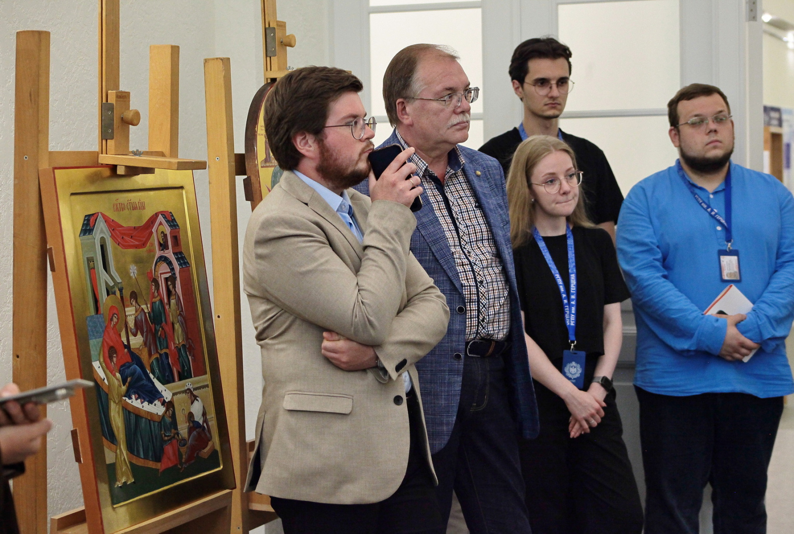 Директор института художественного образования Дмитрий Ткаченко заметил, что подобные выставки являются очень важной составляющей духовного развития студентов. К гостям выставки также обратился настоятель храма святых апостолов Петра и Павла протоиерей Димитрий Симонов: «Христианство удивительным образом раскрыло весь творческий потенциал человека. Это традиция богословия, богатая литературная традиция, зодчество и, конечно, живопись. В богословии очень много аспектов, которые трудно высказать словами, но иконы обладают удивительной способностью выразить невыразимое в красках».