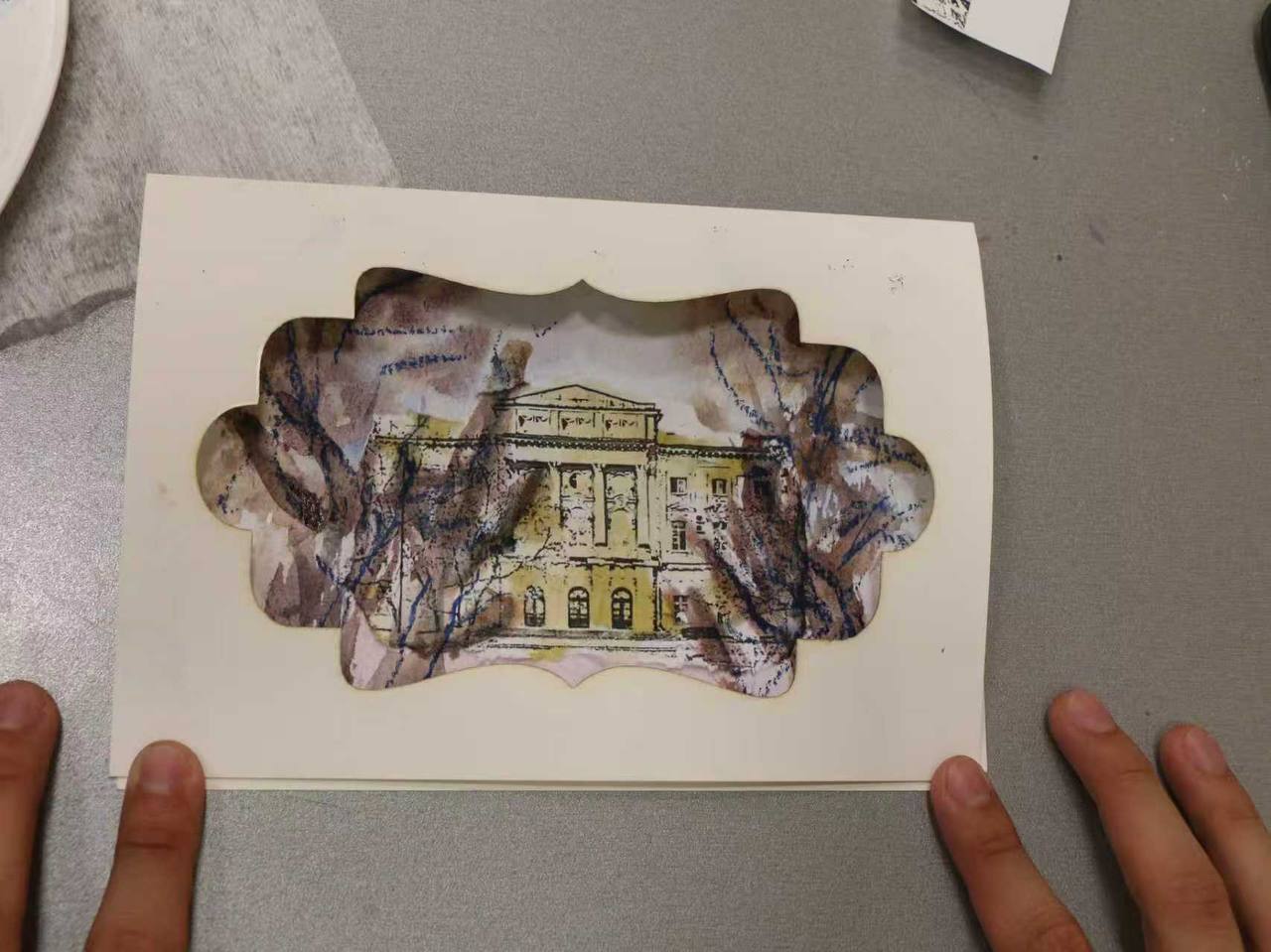 Под руководством доцента кафедры графики и скульптуры Елены Иглиной и ассистента кафедры Ксении Севергиной участники мастер-класса создали художественные открытки с видом на университет со стороны Старого сада. Студенты использовали различные материалы в смешанной технике — акварель, пастель, аппликацию, каждый из них смог передать не только архитектурные детали, но и свое личное восприятие здания.