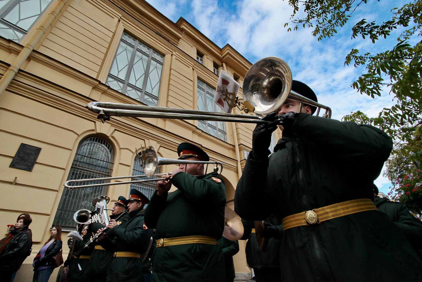 У памятника «Блокадному учителю» в Соляном переулке прошла акция, посвященная подвигу ленинградских педагогов. По инициативе РГПУ им. А. И. Герцена акция в преддверии Дня учителя проводится уже в третий раз. В этом году впервые в церемонии принял участие военный оркестр Академии войск национальной гвардии.