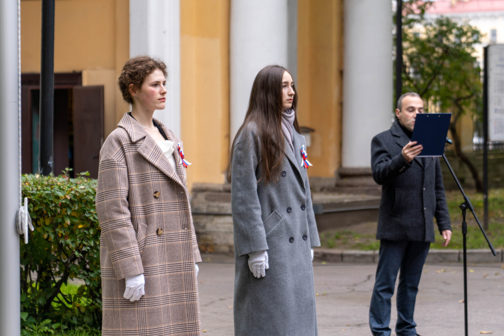 На площади перед главным корпусом РГПУ им. А. И. Герцена состоялась традиционная торжественная церемония поднятия российского флага. Участниками церемонии стали представители ректората, начальники управлений, руководители учебных подразделений, студенты и преподаватели.